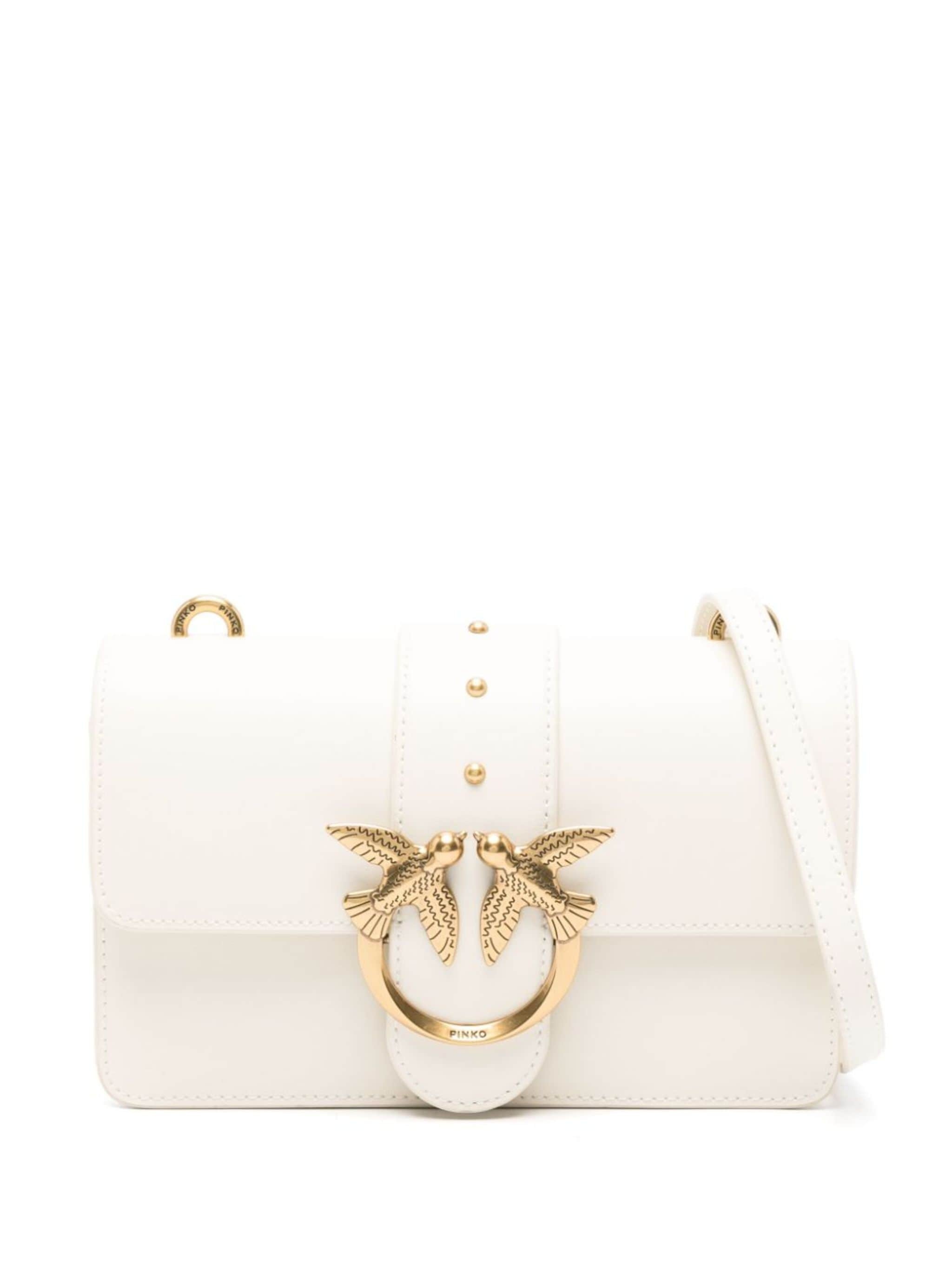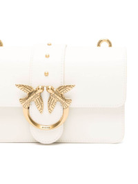 white calf leather smooth grain stud detailing signature Love Birds buckle foldover top with magnetic fastening detachable leather and chain-link shoulder strap partitioned compartment debossed internal logo zip-fastening compartment internal patch pocket Size & Fit Model Measurements: Bust: 0cm Height: 0cm Hips: 0cm Waist: 0cm DEPTH: 6cm HEIGHT: 12cm STRAP: 110cm WIDTH: 20cm Fabric and Care Designer Style ID: 100074A0GK Designer Colour: Z14Q WHITE Composition: Outer: Calf leather 100%