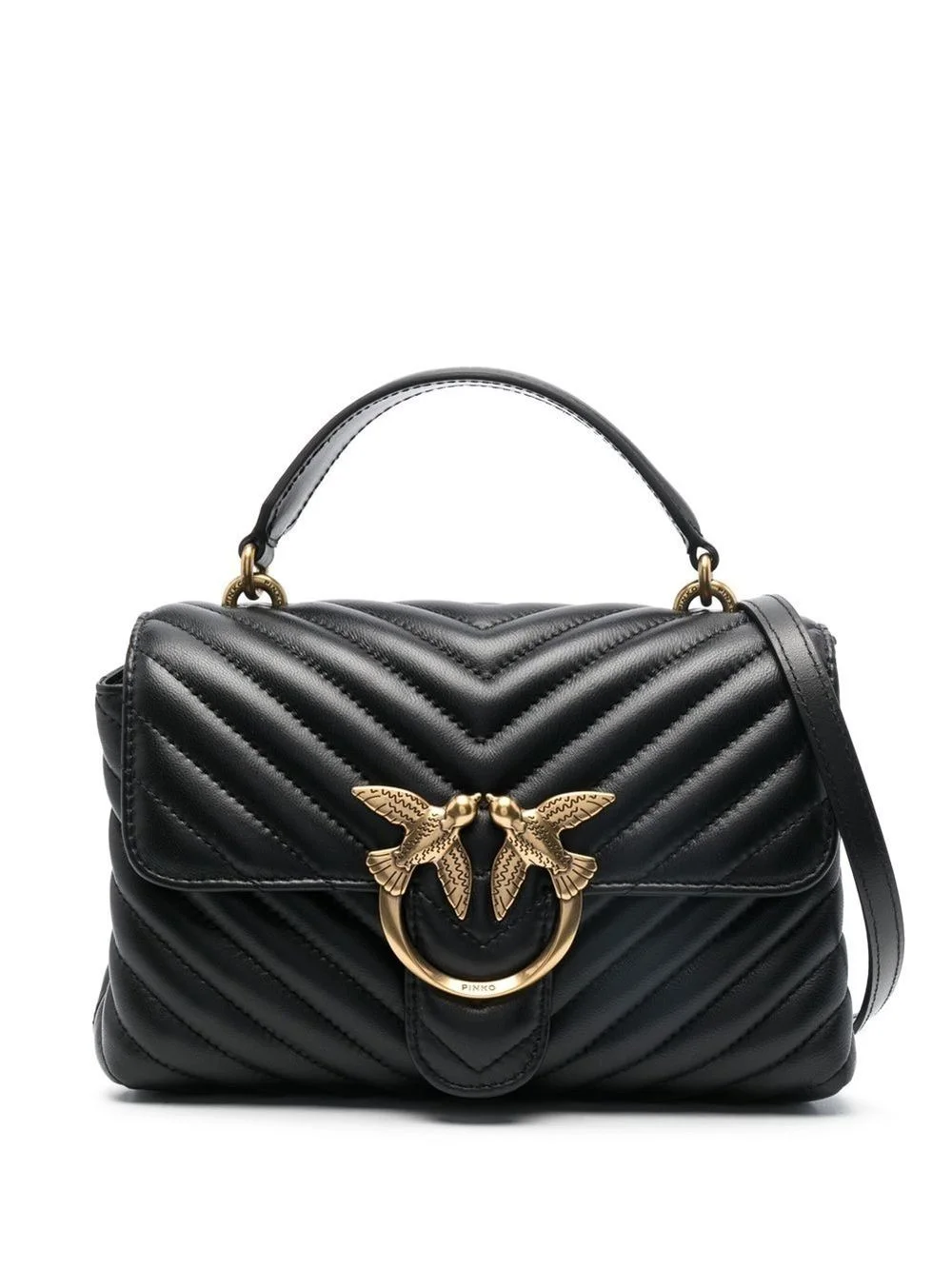 black calf leather chevron quilting gold-tone hardware signature Love Birds buckle single top handle foldover top adjustable detachable shoulder strap internal zip-fastening pocket - depth: 7.0 centimetres, handle: 6.0 centimetres, height: 12.0 centimetres, strap: 55.0 centimetres, width: 22.5 centimetres - Color: BLACK - Made in: China - Designer Style ID: 100044 A0GK Z99Q Composition and care Outer Composition Calf Leather: 100.0%