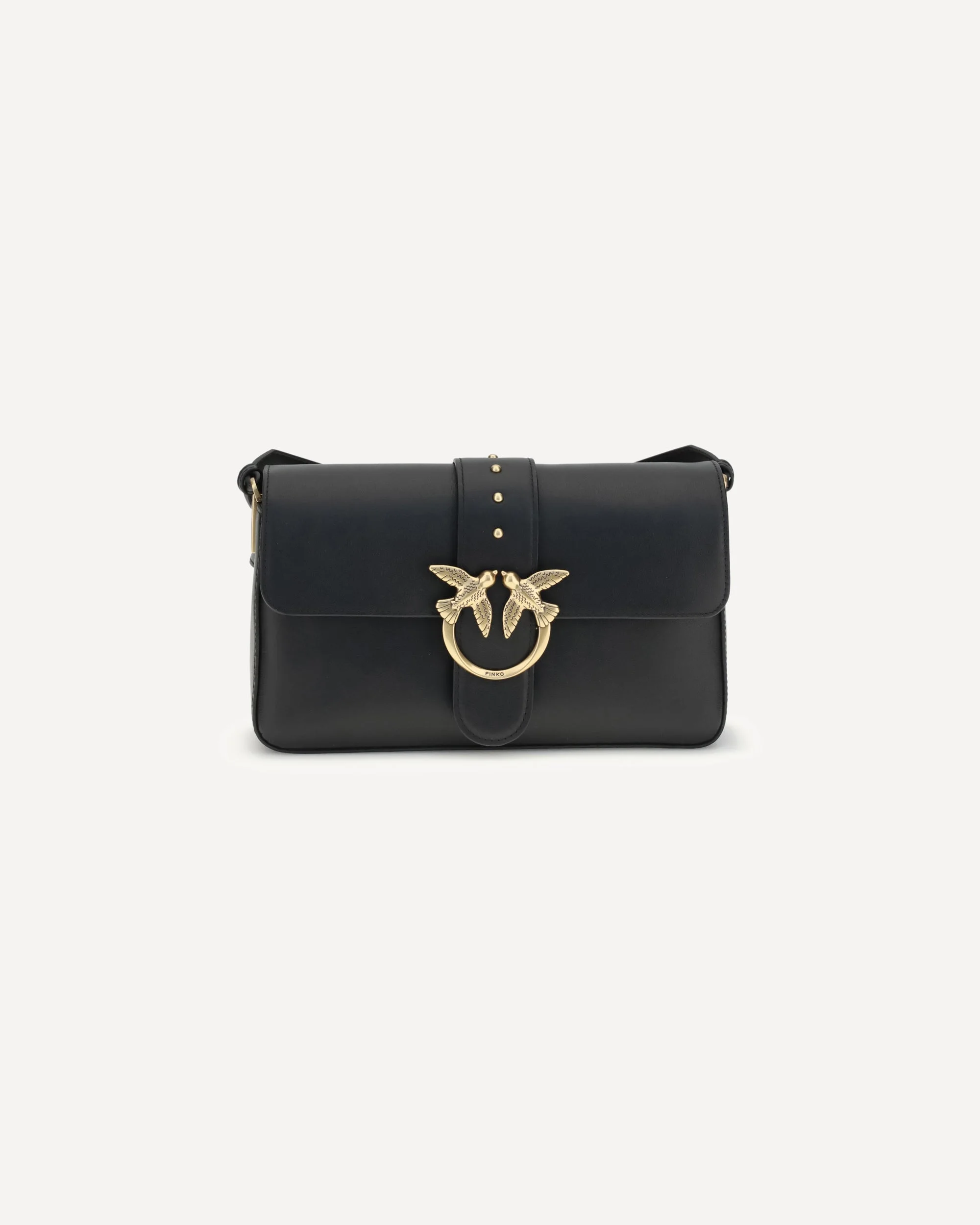 The Love One Bag by Pinko in smooth calf leather features a rectangular shape, flap and magnetic button closure, and removable, interchangeable leather and chain straps. Details include a Love Birds buckle, logo plaque, and leather trims, while the interior with pocket and customized lining ensures practicality. DETAILS - Sku: 104524A0QO_Z99Q - Season: AW25 - Dimension: 27x27x7 - Composition: GENERAL 100% Leather