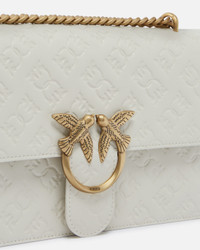 LOVE ONE CLASSIC DC − 100941A1YBZ14Q00001 Love Bag crossbody bag in soft, smooth leather with imprime Love Birds Monogram print. The metal chain strap comes with an adjustable leather shoulder pad for greater comfort when worn. The accessory boasts suede-effect microfibre lining, a leather slip pocket and a zipped centre divider pocket. The flap closure is accompanied by the iconic Love Birds Diamond Cut metal buckle. Activate your PINKO bag: verify the authenticity of your product and access a personalised experience by scanning the Love Birds embroidery on the back of the bag with your smartphone! COMPOSITION Leather: COWHIDE 100% BOVINE SKIN 100% - Outside Fabric: POLYAMMIDE 100% POLYAMIDE 100% - coating: POLYURETHANE 100% - Lining: COTTON 100% MEASUREMENTS - Height: 17 cm - Width: 6 cm - Length: 27 cm
