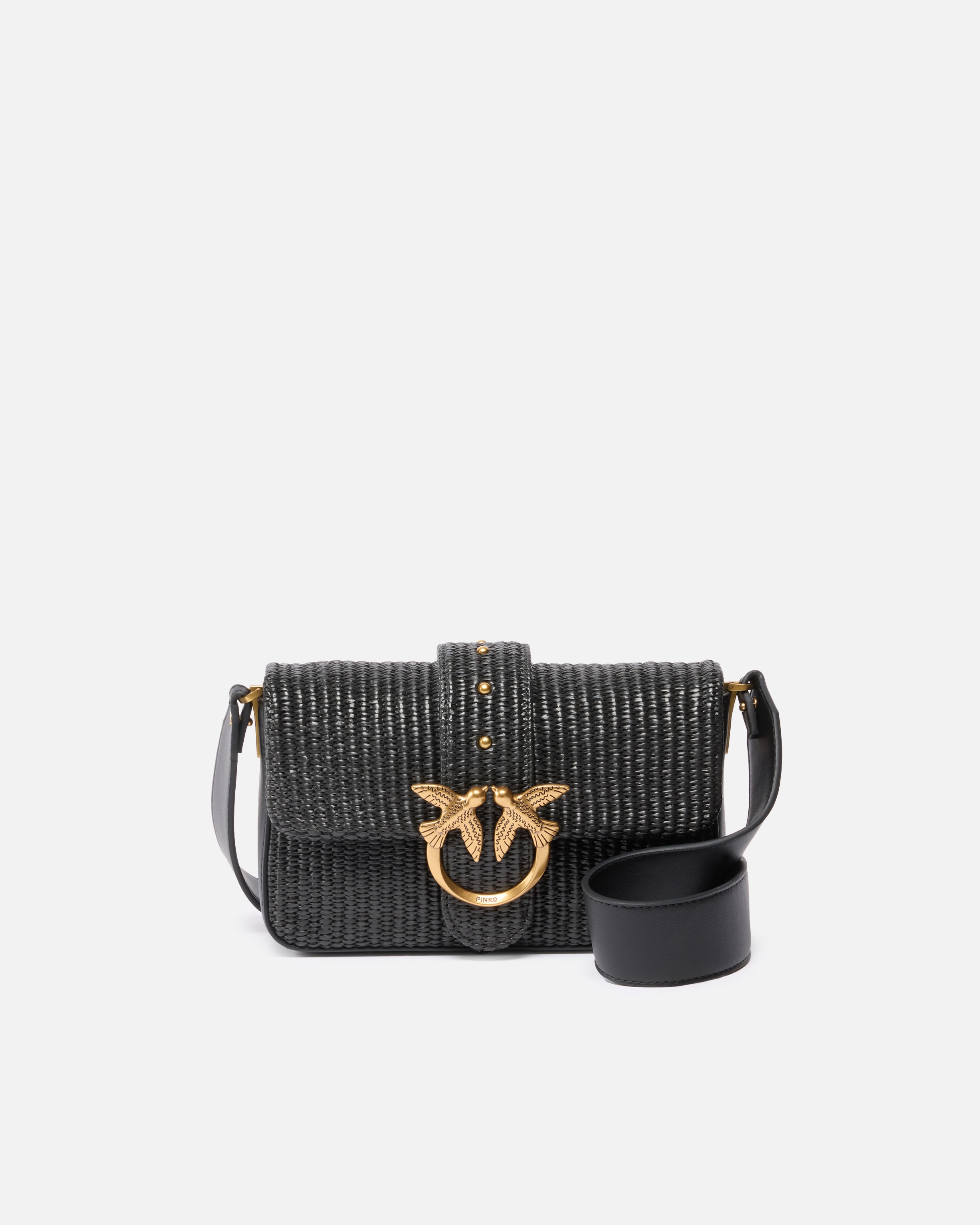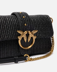 LOVE ONE MINI SLOUCHY FL − 104340A2CFZ99Q00001 Mini Love Bag Slouchy shoulder bag with soft, deconstructed shape that's almost like a small travel bag, made from crocheted raffia for an iconic, summery touch. This bag is complete with a buckle-adjustable leather shoulder pad for shoulder carry and a chain shoulder strap with leather pad, allowing you to customise it to your liking. For an extra touch of style, especially on special occasions, you can also carry this mini bag by hand. The flap fastening is complete with a strap and an antique gold-electroplated metal buckle sporting the iconic Love Birds Diamond Cut logo. The inside of the bag is lined with cotton drill fabric and also includes a leather slip pocket. With its soft shape, this Mini Love Bag gives an iconic PINKO accessory a modern update, giving any look you pair it with a stylish finishing touch. Activate your PINKO bag: verify the authenticity of your product and access a personalised experience by scanning the Love Birds embroidery on the back of the bag with your smartphone! COMPOSITION Outside Fabric: POLYESTER 60% POLYPROPYLENE 40% POLYPROPYL 40% - 1° Outside Fabric: POLYAMMIDE 60% POLYAMIDE 60% POLYURETHANE 40% - Lining: COTTON 100% MEASUREMENTS - Height: 14 cm - Width: 6 cm - Length: 22 cm