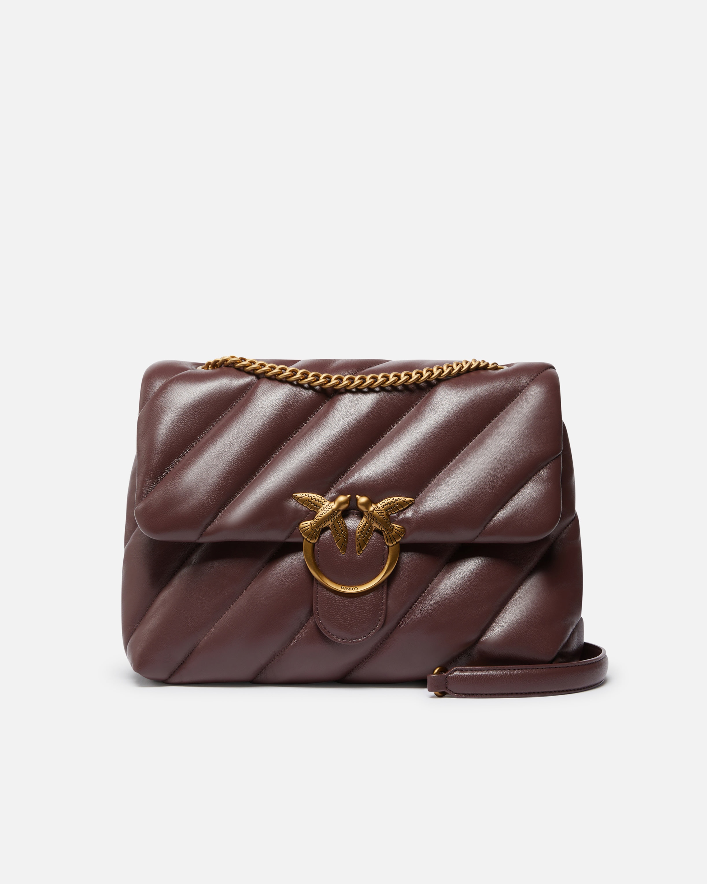 LOVE BIG PUFF CL − 100037A0F2L86Q00001 Big Love Bag Puff in soft nappa leather featuring maxi slanted quilting. The fastening is embellished with the iconic metal Love Birds Diamond Cut buckle. The accessory boasts a microsuede-lined interior, complete with a zipped centre divider pocket and slip pocket. The shoulder strap combines the classic round metal chain with a practical nappa leather shoulder pad. COMPOSITION Leather: SHEEP LEATHER 100% SHEEPSKIN LEATHER 100% - : COTTON 100% - : Zinc 100% MEASUREMENTS - Height: 24 cm - Width: 11 cm - Length: 32 cm