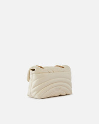 100039A1EX-Z14Q Mini Love Bag Puff small soft crossbody bag in nappa leather with quilting shaped in the characteristic outline of butterfly wings. The sliding metal chain strap with nappa leather shoulder pad can be doubled over to wear the bag on the shoulder. The flap closure is embellished with the iconic antique gold-electroplated metal Love Birds Diamond Cut buckle. The accessory boasts a microsuede-lined interior, complete with a zipped centre divider pocket and an internal pocket for better space management. Activate your PINKO bag: verify the authenticity of your product and access a personalised experience by scanning the Love Birds embroidery on the back of the bag with your smartphone! COMPOSITION Leather: LAMBSKIN LEATHER 100% LAMB LEATHER 100% - Internal: COTTON 100% - Accessory: Zinc 100% MEASURES W: 0.72 g H: 15.0 cm W: 9.0 cm L: 21.0 cm