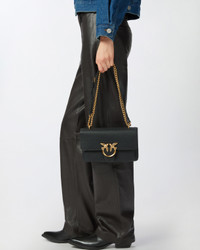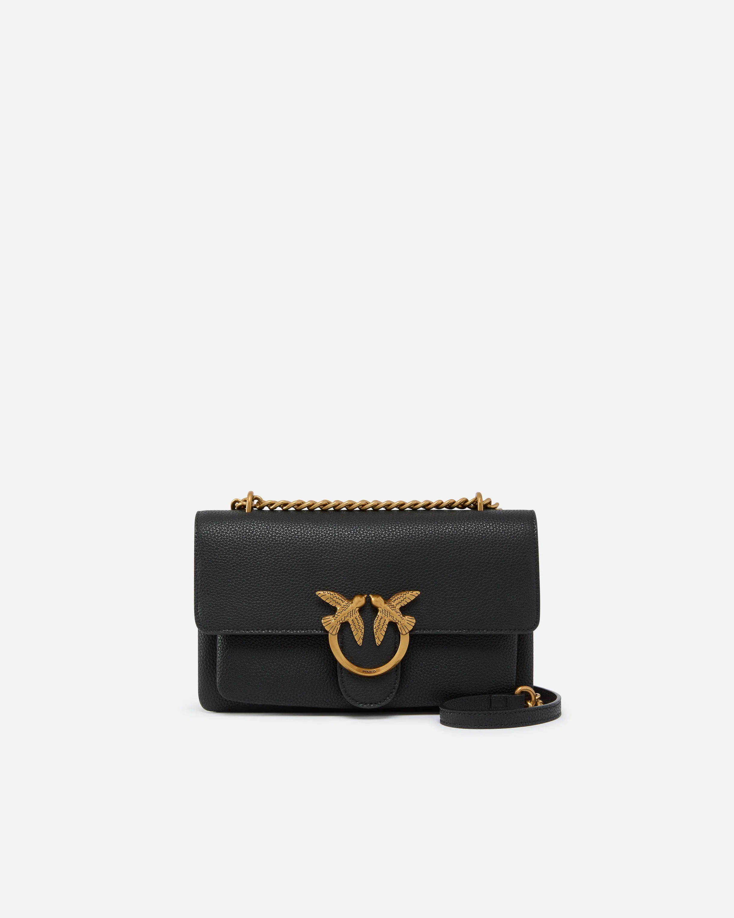 MINI LOVE ONE SOFT − 104528A29QZ99Q00001 Mini Love Bag Soft crossbody bag in fine tumbled leather. The bag features a soft shape, a zipped front pocket, a microsuede-lined interior and a flap fastening complete with the iconic antique gold-plated metal Love Birds Diamond Cut buckle. Thanks to the practical sliding shoulder strap, complete with an adjustable leather pad, the handbag can also be worn on the shoulder, doubling the shoulder strap chain. Activate your PINKO bag: verify the authenticity of your product and access a personalised experience by scanning the Love Birds embroidery on the back of the bag with your smartphone! COMPOSITION Leather: COWHIDE 100% BOVINE SKIN 100% - Outside Fabric: POLYAMMIDE 100% POLYAMIDE 100% - coating: POLYURETHANE 100% - Lining: COTTON 100% MEASUREMENTS - Height: 15 cm - Width: 5 cm - Length: 25 cm