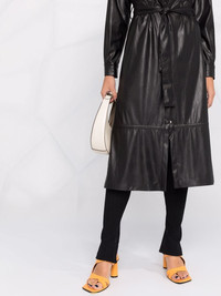 Maris faux-leather belted dress Made in Italy, PINKO's Maris dress is produced in a faux-leather construction. The tonal shirt design features a belted waist, long sleeves and classic collar, exhibiting the brand's effortless aesthetic. Made in Italy Composition Outer: Polyester 100%, Polyurethane 100% Lining: Acetate 70%, Polyester 30% SIZE & FIT Model measurements Height 5 ft 10 in(1.79 m) Bust/Chest 31.49 in(80 cm) Hips 35.03 in(89 cm) Waist 24.01 in(61 cm) FittingInformation This piece fits true to size. We recommend you get your regular size Cut for a loose fit. Comes with an adjustable belt for a flexible fit at the waist Made with a mid-weight fabric Washing instructions Machine Wash