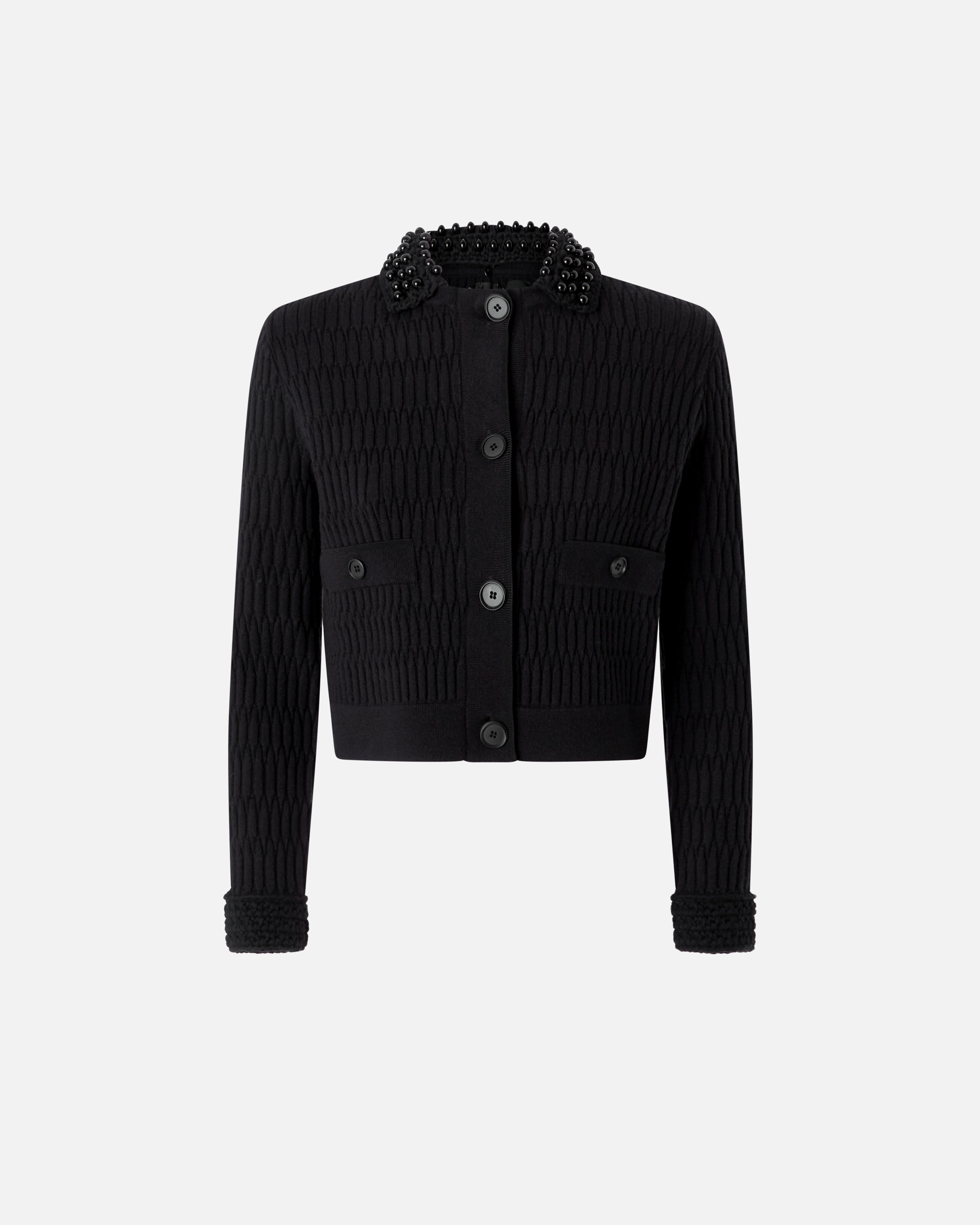SHORT KNIT JACKET WITH BEADED CROCHETED COLLAR