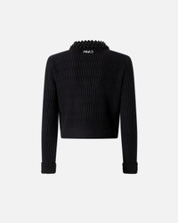 MASQUERADE JACKET − 104361A27JZ99 Small, short jacket in knit wool-blend fabric worked with a special type of stitch that creates a striking geometric texture. The garment features a crocheted cotton shirt collar embellished with tonal beads, which can be removed via the small buttons, allowing you to wear the jacket collarless and making it easier and safer to wash. The slim fit of the jacket is accompanied by long sleeves, a contrasting-colour inlaid PINKO logo in the middle at the back and single-breasted button fastening. COMPOSITION 1° Outside Fabric: ACRYLIC 62% POLYESTER 28% WOOL 10% - 2° Outside Fabric: VISCOSE 100% - Neck: COTTON 100% - : ACRYLIC RESIN 100% ACRYL.RES. 100%