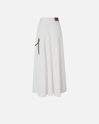 HURGHADA GONNA − 104647A2DOZ04 Long and wide skirt made of untied cotton and lyocell blend bull, with a particular soft and light texture. The five-pocket skirt line and the metal zip and tack button closure recall the world of denim, and the jewel chain, embellished with bright rhinestones and attached with small carabiners to the belt loops at the waist adds a special touch. The wide line of this skirt and its refined details are perfect for creating everyday outfits to wear to make even a simple day at the office special. COMPOSITION Outside Fabric: LYOCELL 75% COTTON 25% - Lining: COTTON 100%