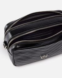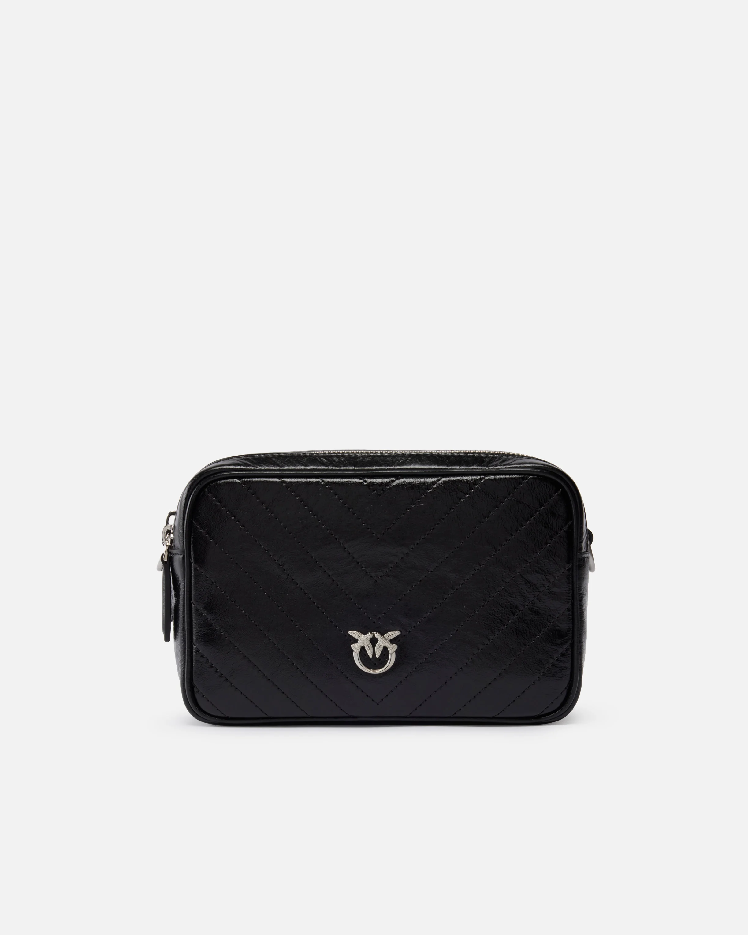 CARRIE CAMERA BAG CLASSIC − 104336A2JCZ99E00001 Medium cotton camera bag made from slightly gathered, wrinkled leather with chevron-patterned quilting. Featuring an adjustable leather shoulder strap so it can be carried by hand or on the shoulder, the bag is extremely versatile and practical. A distinctive accessory that is perfect for endless looks, this bag has a double zip and inner pockets to keep your essentials safe. The refined design is complemented by the Love Birds logo, which embodies the inimitable style of the brand. Activate your PINKO bag: verify the authenticity of your product and access a personalised experience by scanning the Love Birds embroidery on the back of the bag with your smartphone! COMPOSITION Lining: COTTON 100% - Leather: COWHIDE 100% BOVINE SKIN 100% MEASUREMENTS - Height: 13 cm - Width: 8.5 cm - Length: 20.5 cm