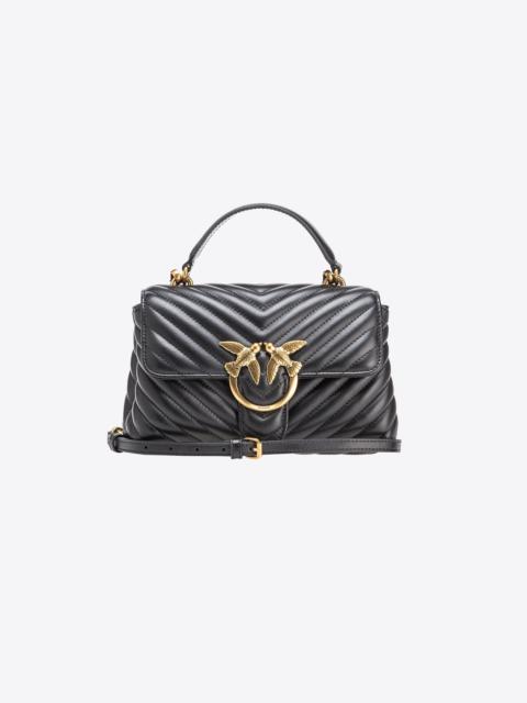 100044A0GK-C50Q Mini Lady Love Bag Puff in quilted nappa leather with chevron pattern. The fastening is complete with the iconic metal Love Birds Diamond Cut buckle. The accessory boasts a microsuede-lined interior, complete with a zipped centre divider pocket and slip pocket. Top handle and shoulder strap that combines the classic round-link metal chain with a practical, adjustable nappa leather pad. Activate your PINKO bag: verify the authenticity of your product and access a personalised experience by scanning the Love Birds embroidery on the back of the bag with your smartphone! COMPOSITION Leather: SHEEP LEATHER 100% SHEEPSKIN LEATHER 100% - Leather: COWHIDE 100% BOVINE SKIN 100% - Outside Fabric: POLYAMMIDE 60% POLYAMIDE 60% POLYURETHANE 40% - Lining: COTTON 100% MEASURES W: 0.71 g H: 15.0 cm W: 8.0 cm L: 22.5 cm