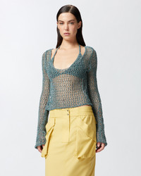 DENALI SWEATER − 104749A2FBSSZ Long-sleeved summer sweater in openwork mesh-stitched melange yarn, featuring built-in halterneck bikini top to protect more sensitive areas from the material's see-through effect and provide a feminine touch evoking hot, sunny days. The wide round neck at the front and relaxed fit give this sweater—which offers a playful take on textures and provides exceptional originality—a relaxed, casual feel when worn. COMPOSITION Lining: POLYESTER 100% - : POLYESTER 47% COTTON 36% VISCOSE 17% - : POLYESTER 100% - : POLYESTER 47% COTTON 36% VISCOSE 17% - : POLYESTER 100%