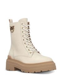 Mia leather combat boots Highlights - White - Calf leather - Signature love birds buckle - Round toe - Front lace-up fastening - Side zip fastening - Branded insole - Chunky rubber sole Imported Composition Lining: Calf Leather 100% Sole: Rubber 100% Outer: Calf Leather 100%