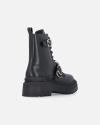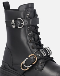 SD0407P087-Z99 Lace-up leather combat boots with 16 cm-high leg shaft and 5.5 cm-high rubber lug sole. This model stands out for its understated yet bold design enhanced by metal details that emphasise its character. The side zip makes them easy to put on, while the adjustable straps with buckle, one of which features a metal loop bearing the Love Birds logo, lend a sophisticated rock'n'roll edge. We all know that details are what make the difference: choose this pair to give your casual looks an edgy touch. COMPOSITION Lining: CALF LEATHER 100% CALFSKIN LEATHER 100% - Upper: CALF LEATHER 68% CALFSKIN LEATHER 68% POLYURETHANE 32% - Sole: CALF LEATHER 100% CALFSKIN LEATHER 100% - Sole: ELASTODIENE 100% RUBBER 100% MEASURES W: 2.18 g