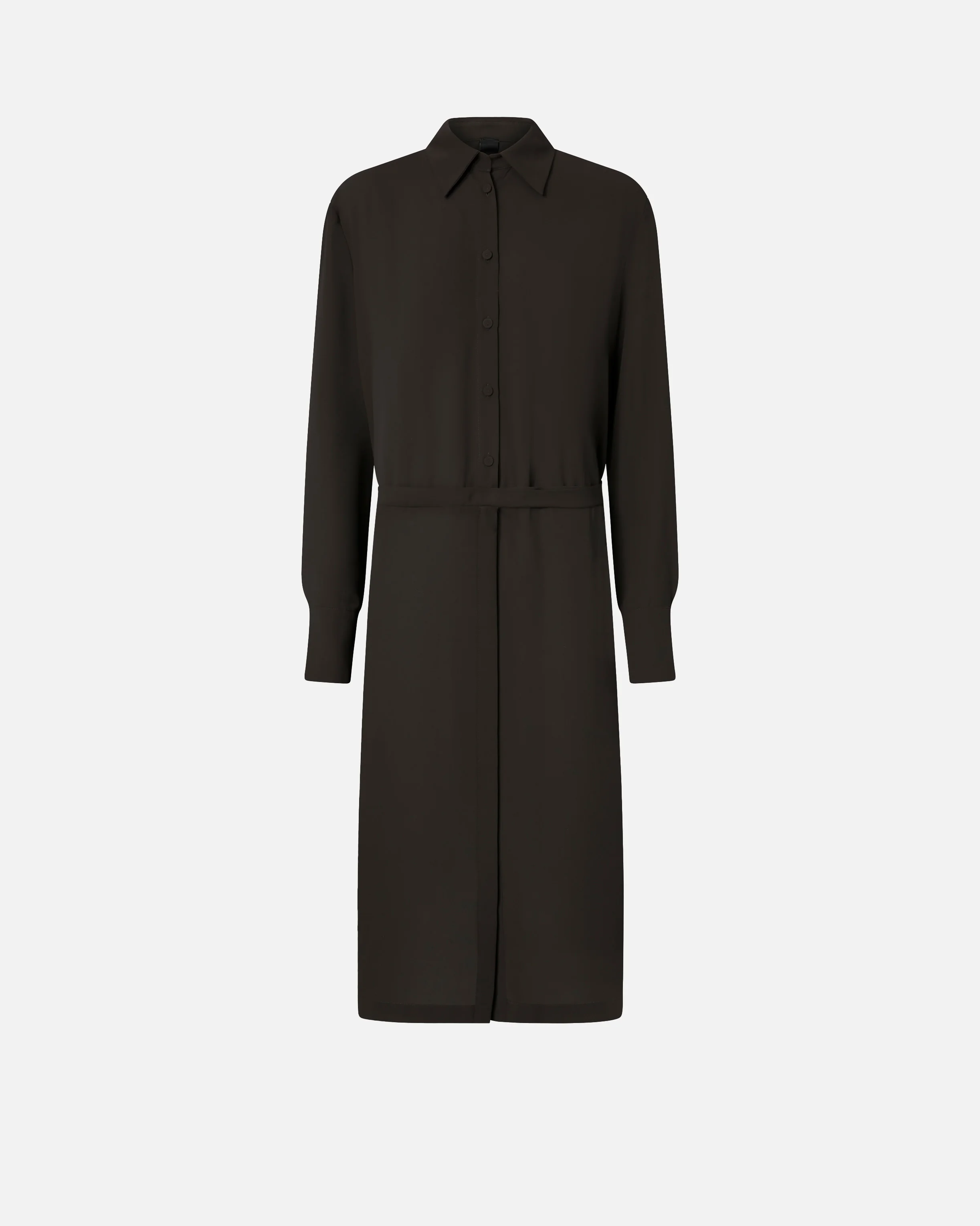 ANTIPASTO DRESS − 105644A2QWM04 Midi shirt dress with fitted waist, long sleeves, shirt collar, front button placket and buttoned cuffs. This piece, made very fine, fluid and lightweight technical crepe, is well suited to everyday wear and features a gathered yoke on the back that lends movement. The dress is complete with a small matching-fabric belt to tie at the waist, allowing you to personalise the fit and style. COMPOSITION Outside Fabric: POLYESTER 100% - Lining: POLYESTER 100%