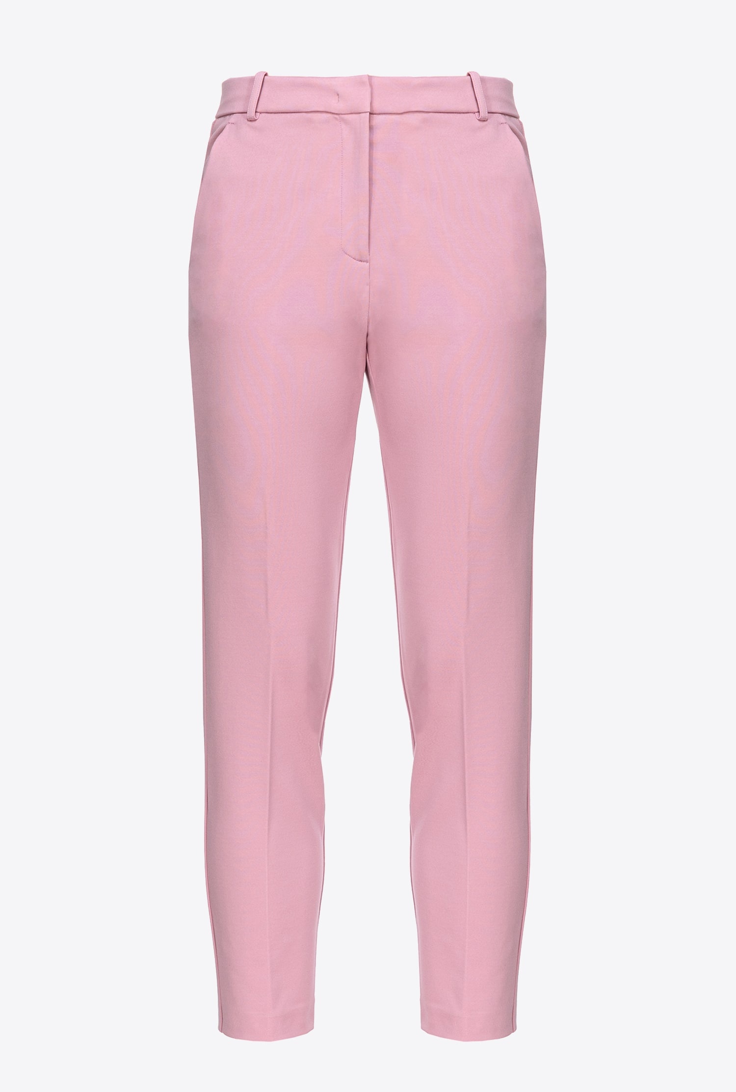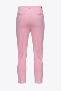 Cigarette trousers in technical, full Milano-knit stretch viscose fabric, with special scuba-effect finish. Pressed crease in the middle of the legs on the front and back, slanted front pockets and welt pockets on the back. Lined. Belt loops on the waist. Small hook-and-eye and zip fastening. COMPOSITION Outside Fabric: VISCOSE 65% POLYAMMIDE 30% POLYAMIDE 30% ELASTANE 5% - Lining: ACETATE 65% POLYESTER 35%