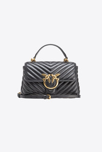 LOVE LADY PUFF MINI CL − 100044A0GKZ99Q00001 Mini Lady Love Bag Puff in quilted nappa leather with chevron pattern. The fastening is complete with the iconic metal Love Birds Diamond Cut buckle. The accessory boasts a microsuede-lined interior, complete with a zipped centre divider pocket and slip pocket. Top handle and shoulder strap that combines the classic round-link metal chain with a practical, adjustable nappa leather pad. Activate your PINKO bag: verify the authenticity of your product and access a personalised experience by scanning the Love Birds embroidery on the back of the bag with your smartphone! COMPOSITION Leather: SHEEP LEATHER 100% SHEEPSKIN LEATHER 100% - Leather: COWHIDE 100% BOVINE SKIN 100% - Outside Fabric: POLYAMMIDE 60% POLYAMIDE 60% POLYURETHANE 40% - Lining: COTTON 100% MEASUREMENTS - Height: 15 cm - Width: 7 cm - Length: 22.5 cm