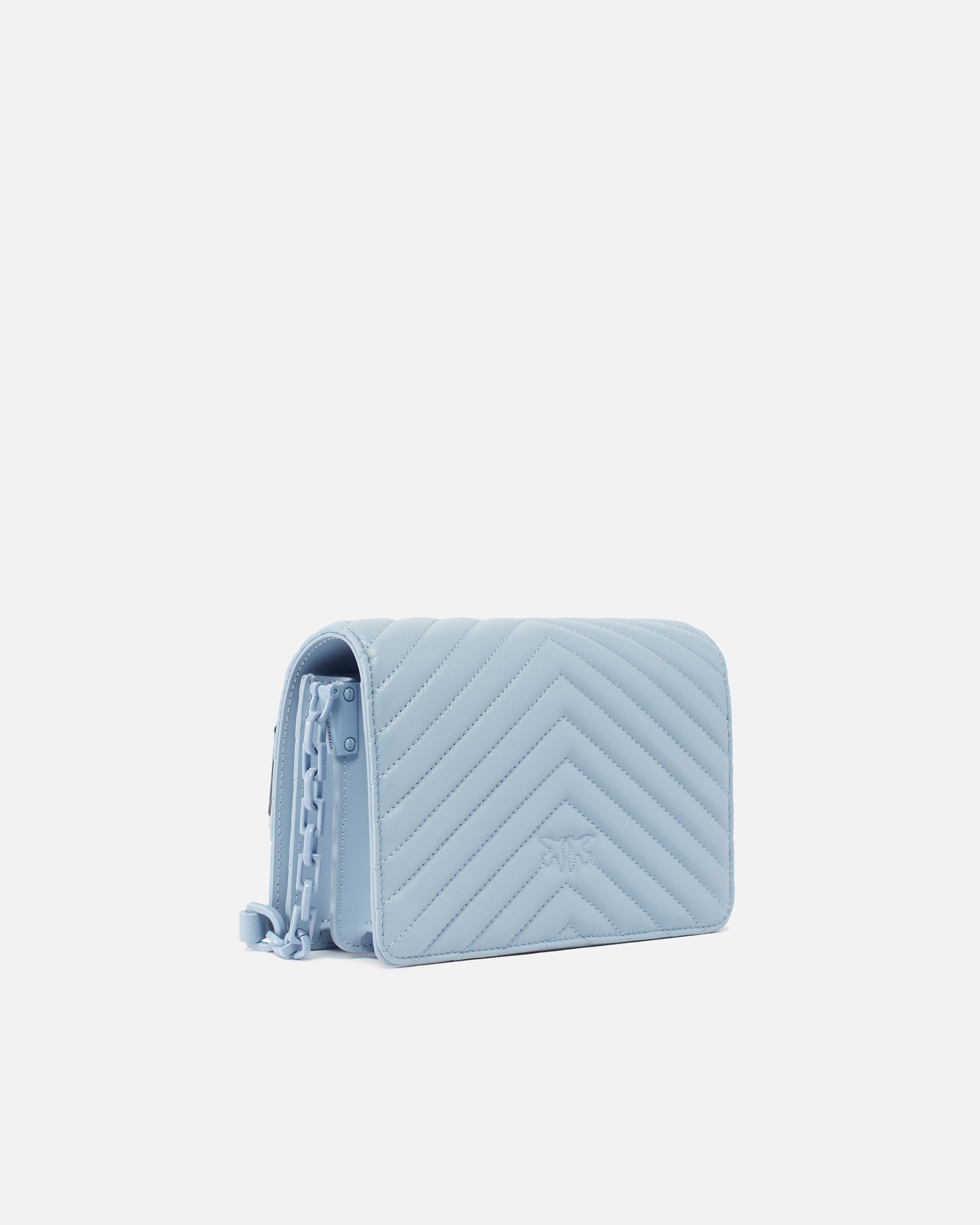 LOVE CLICK MINI − 100067A0VME57B00001 Mini Love Bag Click in quilted nappa leather with chevron design. The concealed press-stud fastening is embellished by the iconic, matching colour-electroplated metal Love Birds Diamond Cut buckle with cut-out effect. The accessory boasts a microsuede-lined interior, complete with a zipped centre divider pocket and leather slip pocket. The shoulder strap combines the square-link metal chain with a practical leather shoulder pad. Activate your PINKO bag: verify the authenticity of your product and access a personalised experience by scanning the Love Birds embroidery on the back of the bag with your smartphone! COMPOSITION Lining: POLYAMMIDE 50% POLYAMIDE 50% POLYURETHANE 50% - Leather: SHEEP LEATHER 100% SHEEPSKIN LEATHER 100% - Material: COWHIDE 100% BOVINE SKIN 100% MEASUREMENTS - Height: 13 cm - Width: 8 cm - Length: 19 cm