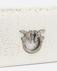 LOVE CLICK MINI − 100067A28FZZFO00001 Small crossbody Mini Love Bag made from premium ayers python leather, finished with a special laminated spray that adds a unique touch to your look. Each bag is hand-applied with leather, so every model shows differences in stripes and shades: these are unique features that make your bag even more unique. The closure is completed with the iconic Love Birds Diamond Cut metal buckle, customized with a faceted three-dimensional engraving effect. The metal chain strap includes a practical adjustable shoulder pad, while the fabric-lined interior also features a handy zip-closed divider pocket for better space organization. The bag is part of the special Limited Edition capsule collection produced in limited quantities exclusively for PINKO Galleria. Use the special NFC chip to enjoy a dedicated experience with the bag you purchased! COMPOSITION Lining: VISCOSE 100% - Leather: SNAKESKIN LEATHER 100% SNAKESKIN 100% - Leather: CALF LEATHER 100% CALFSKIN LEATHER 100% MEASUREMENTS - Height: 14 cm - Width: 7 cm - Length: 20 cm