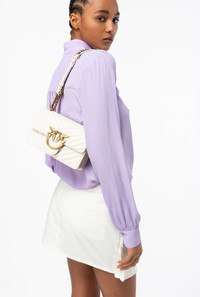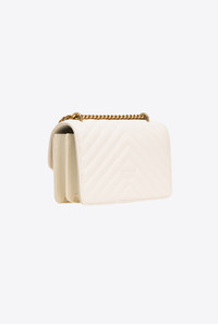 LOVE ONE MINI DC − 100074A0GKZ14Q00001 Mini Love Bag One in quilted nappa leather with chevron pattern. The fastening is embellished with the iconic metal Love Birds Diamond Cut buckle. The accessory boasts a suede microfibre-lined interior, complete with a zipped centre divider pocket and leather slip pocket. The shoulder strap combines the classic round-link chain with a practical, adjustable leather shoulder pad. COMPOSITION Leather: SHEEP LEATHER 100% SHEEPSKIN LEATHER 100% - Outside Fabric: COWHIDE 92% BOVINE SKIN 92% POLYURETHANE 8% - 1° Outside Fabric: POLYAMMIDE 50% POLYAMIDE 50% POLYURETHANE 50% - Lining: COTTON 100% MEASUREMENTS - Height: 13 cm - Width: 6 cm - Length: 21 cm