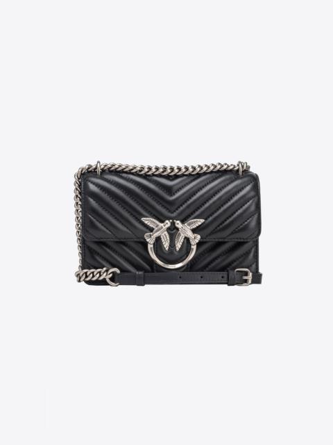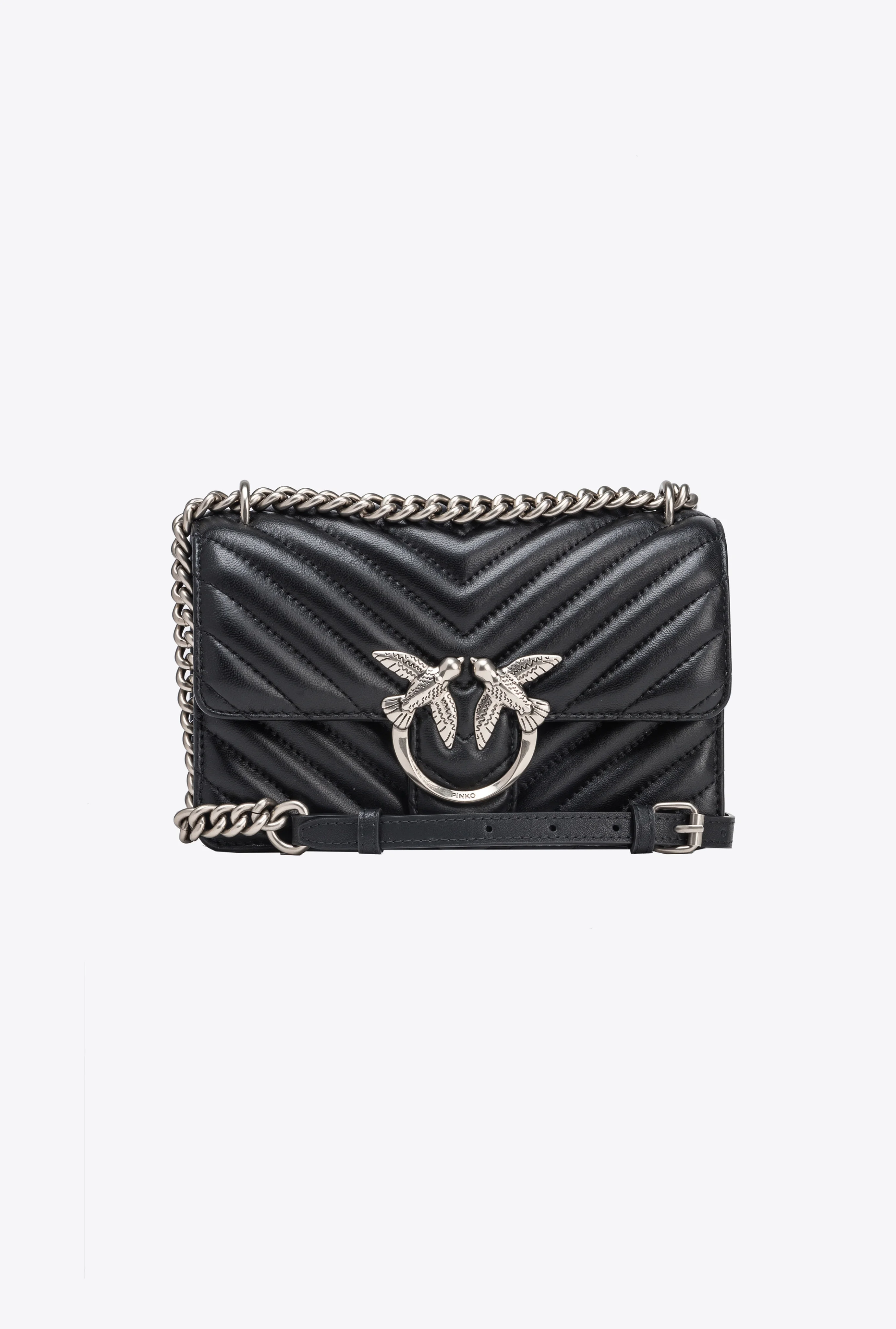 LOVE ONE MINI DC − 100074A0GKZ99O00001 Mini Love Bag One in quilted nappa leather with chevron pattern. The fastening is embellished with the iconic metal Love Birds Diamond Cut buckle. The accessory boasts a suede microfibre-lined interior, complete with a zipped centre divider pocket and leather slip pocket. The shoulder strap combines the classic round-link chain with a practical, adjustable leather shoulder pad. COMPOSITION Leather: SHEEP LEATHER 100% SHEEPSKIN LEATHER 100% - Outside Fabric: COWHIDE 92% BOVINE SKIN 92% POLYURETHANE 8% - 1° Outside Fabric: POLYAMMIDE 50% POLYAMIDE 50% POLYURETHANE 50% - Lining: COTTON 100% MEASUREMENTS - Height: 13 cm - Width: 6 cm - Length: 21 cm