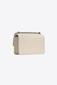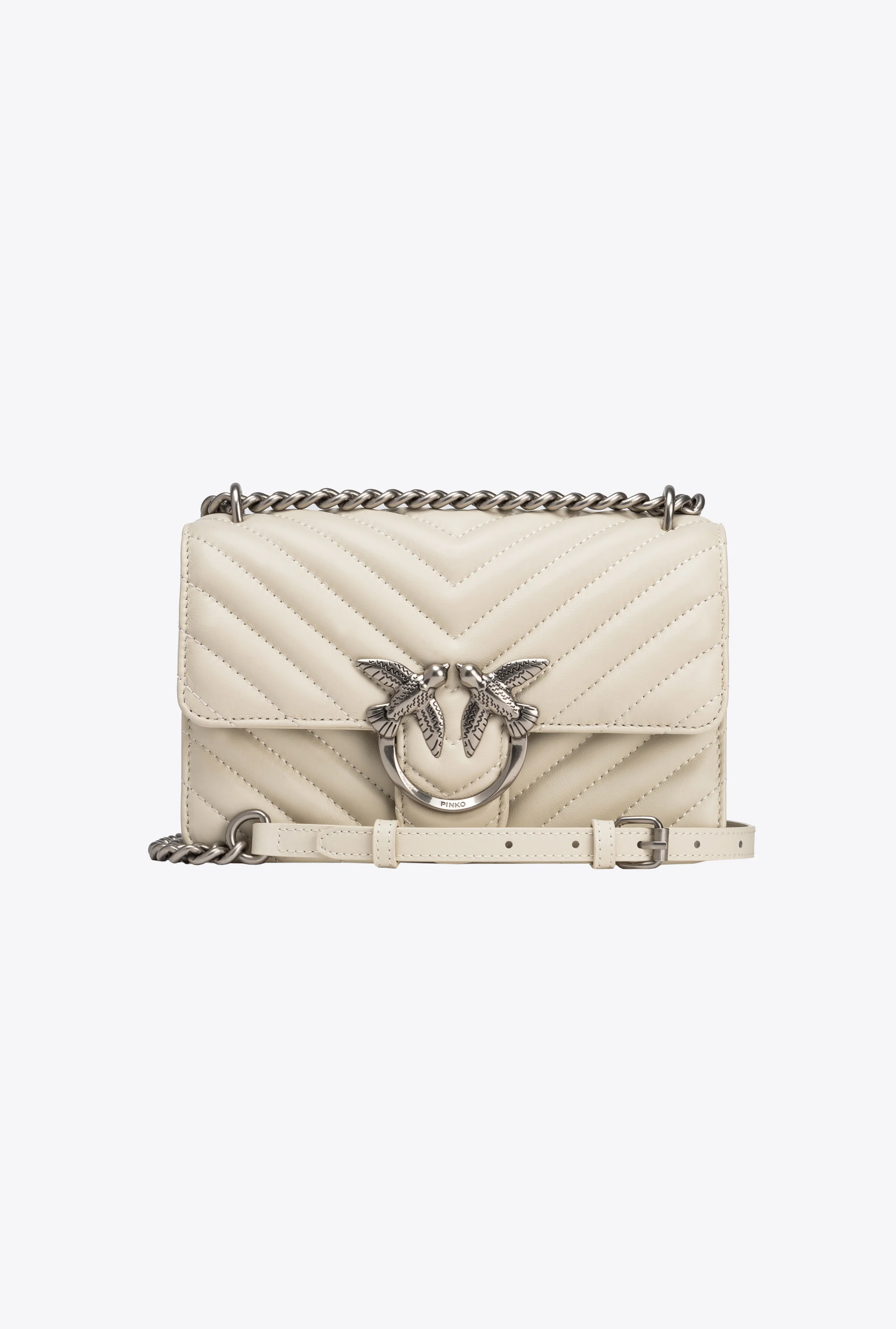 LOVE ONE MINI DC − 100074A0GKZ14O00001 Mini Love Bag One in quilted nappa leather with chevron pattern. The fastening is embellished with the iconic metal Love Birds Diamond Cut buckle. The accessory boasts a suede microfibre-lined interior, complete with a zipped centre divider pocket and leather slip pocket. The shoulder strap combines the classic round-link chain with a practical, adjustable leather shoulder pad. COMPOSITION Leather: SHEEP LEATHER 100% SHEEPSKIN LEATHER 100% - Outside Fabric: COWHIDE 92% BOVINE SKIN 92% POLYURETHANE 8% - 1° Outside Fabric: POLYAMMIDE 50% POLYAMIDE 50% POLYURETHANE 50% - Lining: COTTON 100% MEASUREMENTS - Height: 13 cm - Width: 6 cm - Length: 21 cm