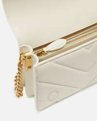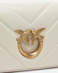 LOVE CLICK MINI − 100067A136Z14Q00001 Love Bag Click small crossbody bag in nappa leather with maxi quilted chevron pattern. Under-flap fastening customised with the iconic, antique gold-electroplated Love Birds Diamond Cut metal buckle with cut-out effect. The accessory has suede-effect microfibre inner lining, a slip pocket and a zipped centre divider pocket. The bag is complete with a shoulder strap combining a round-link metal chain customised with Love Birds with a practical, adjustable leather shoulder pad for greater comfort when worn. Activate your PINKO bag: verify the authenticity of your product and access a personalised experience by scanning the Love Birds embroidery on the back of the bag with your smartphone! COMPOSITION Leather: RAM LEATHER 100% SHEEPSKIN LEATHER 100% - Lining: COTTON 100% MEASUREMENTS - Height: 14 cm - Width: 7 cm - Length: 19 cm