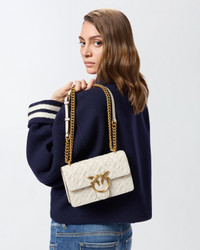 100074A1YB-Z14Q Love Bag mini crossbody bag in soft, silky leather with imprime Love Birds Monogram motif and antique gold-electroplated Love Birds Diamond Cut buckle. Inside, it has suede lining, a leather slip pocket and a zipped centre divider pocket. The bag is complete with a shoulder strap combining a metal chain and adjustable leather shoulder pad. Activate your PINKO bag: verify the authenticity of your product and access a personalised experience by scanning the Love Birds embroidery on the back of the bag with your smartphone! COMPOSITION Leather: COWHIDE 100% BOVINE SKIN 100% - Outside Fabric: POLYAMMIDE 100% POLYAMIDE 100% - coating: POLYURETHANE 100% - Lining: COTTON 100% MEASURES W: 0.57 g H: 12.0 cm W: 6.0 cm L: 21.0 cm