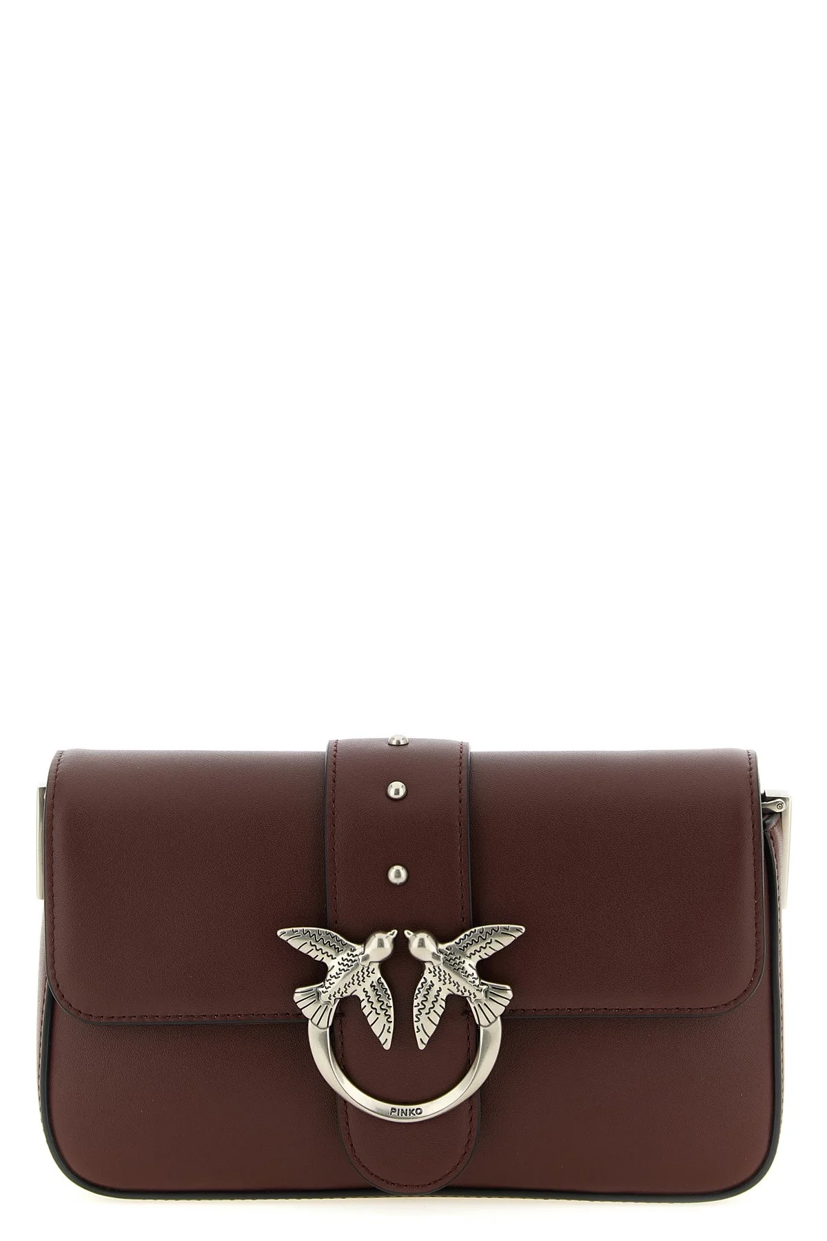 cod. 104340A0QOR49O 'Mini Love Slouchy' leather shoulder bag, magnetic flap closure with studs and antiqued metal 'Love Birds Diamond Cut' buckle on the front, cotton drill fabric lining, double adjustable and removable shoulder strap. Color: Bordeaux Size & Fit: W 22 x H 14 x D 6 cm Composition: 100% cow leather (Bos Taurus) Made in: China