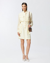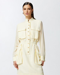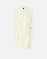BENVENUTO DRESS − 105019A2I9D22 Lightweight linen and viscose shirt dress with cuff-adorned long sleeves in semi-sheer georgette. This daytime dress is complete with a stand-up collar and two pairs of patch pockets, at the front and sides, that provide a utility-inspired touch. This mini dress features an elasticated waistband with adjustable drawstring at the back, allowing you to tailor the fit based on your preferences. Front button fastening. Refined, feminine and modern, this mini dress is ideal for a daytime outfit with a special twist. COMPOSITION 1° Outside Fabric: VISCOSE 73% LINEN 27% - 2° Outside Fabric: POLYESTER 100%