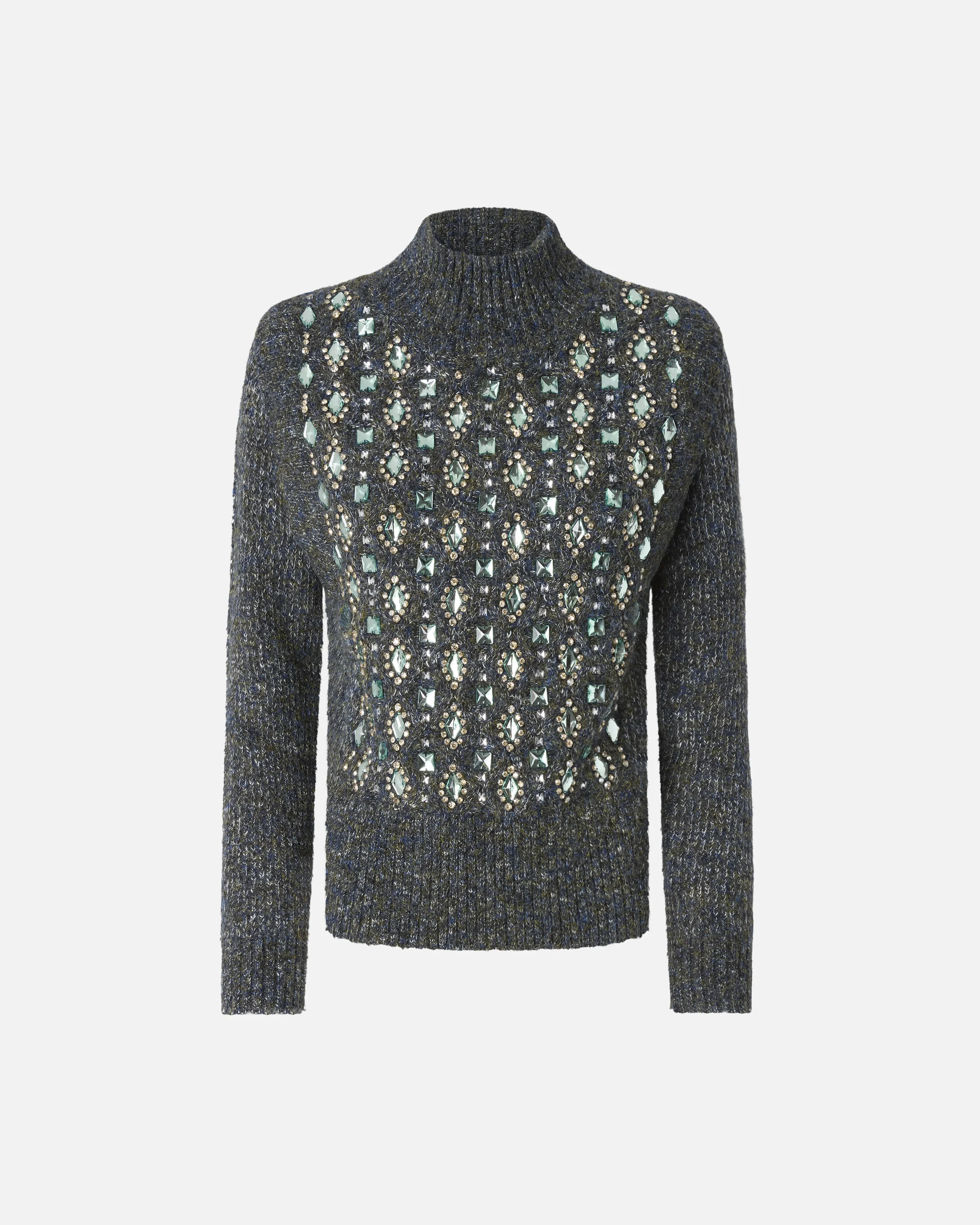 MIRROR IMAGE KNITWEAR − 105971A2YCIG1 Soft-feeling cardigan with ribbing on the crew neck, cuffs and hem and cable stitching on the front and sleeves. Embellished with hand-applied chaton embroidery on the front, which provides glowing contrast against the yarn, this item will give your wardrobe a touch of originality. The perfect piece to face the first cold spells with a touch of style that has not sacrificed comfort. The piece has undergone finishing tests to minimise the possible formation of pilling, ensuring greater fabric softness and durability. COMPOSITION Outer Yarn: POLYESTER 85% ACRYLIC 13% ELASTANE 2% - : Glass 100% - : ACRYLIC RESIN 100% ACRYL.RES. 100% - : STEEL 100%