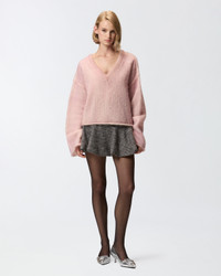 MILORD KNITWEAR − 105945A2YFP66 Soft knit made of a mohair blend yarn that gives a soft and luminous texture. Straight and slim line, long sleeves, V-neck, and slightly dropped shoulders that enhance a seductive feminine silhouette. Perfect to pair with high-waisted pants and ankle boots for a sophisticated and enveloping autumn look. COMPOSITION Outer Yarn: MOHAIR 80% POLYAMIDE 20% POLYAMMIDE 20%