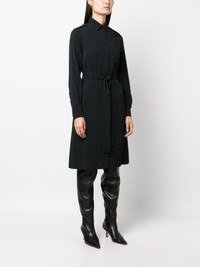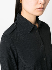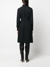 monogram-pattern belted shirtdress Highlights - Black - Monogram pattern - Straight-point collar - Front button fastening - Long sleeves - Buttoned cuffs - Belted waist - Knee-length - Straight hem Imported Composition Silk 100% SIZE & FIT Model measurements Height 5 ft 10 in(1.78 m) Bust/Chest 30.7 in(78 cm) Hips 36.22 in(92 cm) Waist 25.59 in(65 cm) FittingInformation Designed to be unstructured, offering a loose fit throughout The adjustable tie waist gives a more adaptable and personalised fit Made from a midweight non-stretch fabric This piece fits true to size – take your usual size Washing instructions Dry Clean Only