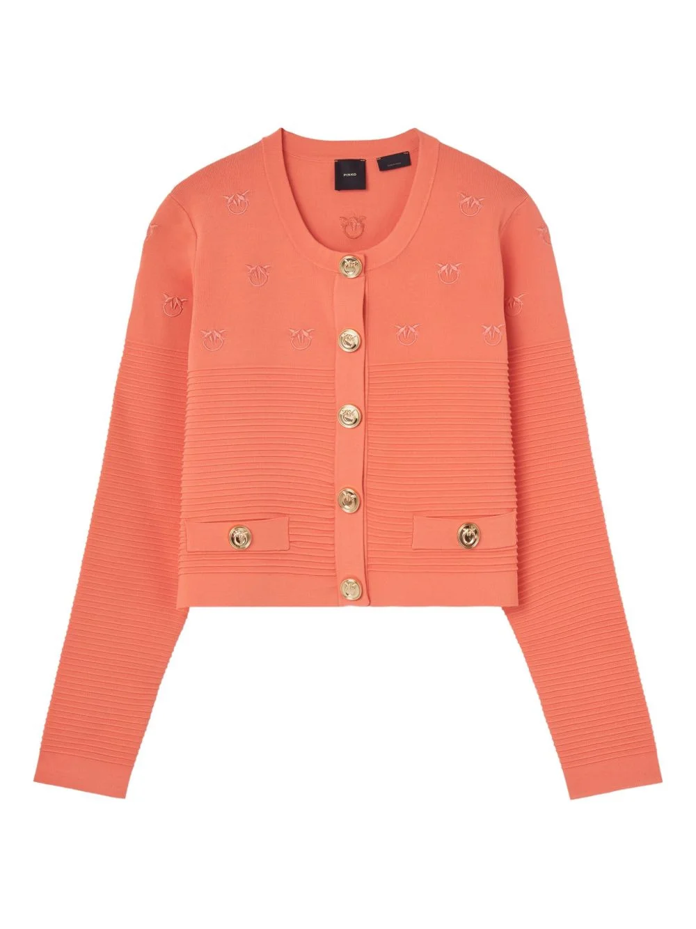 motif-embroidered ribbed jacket Highlights - Coral pink - Ribbed texture - Embroidered detail - Gold-tone buttons - Front pockets - Long sleeves Imported Composition Fabric 100% Washing instructions Read Manufacturer Guidelines