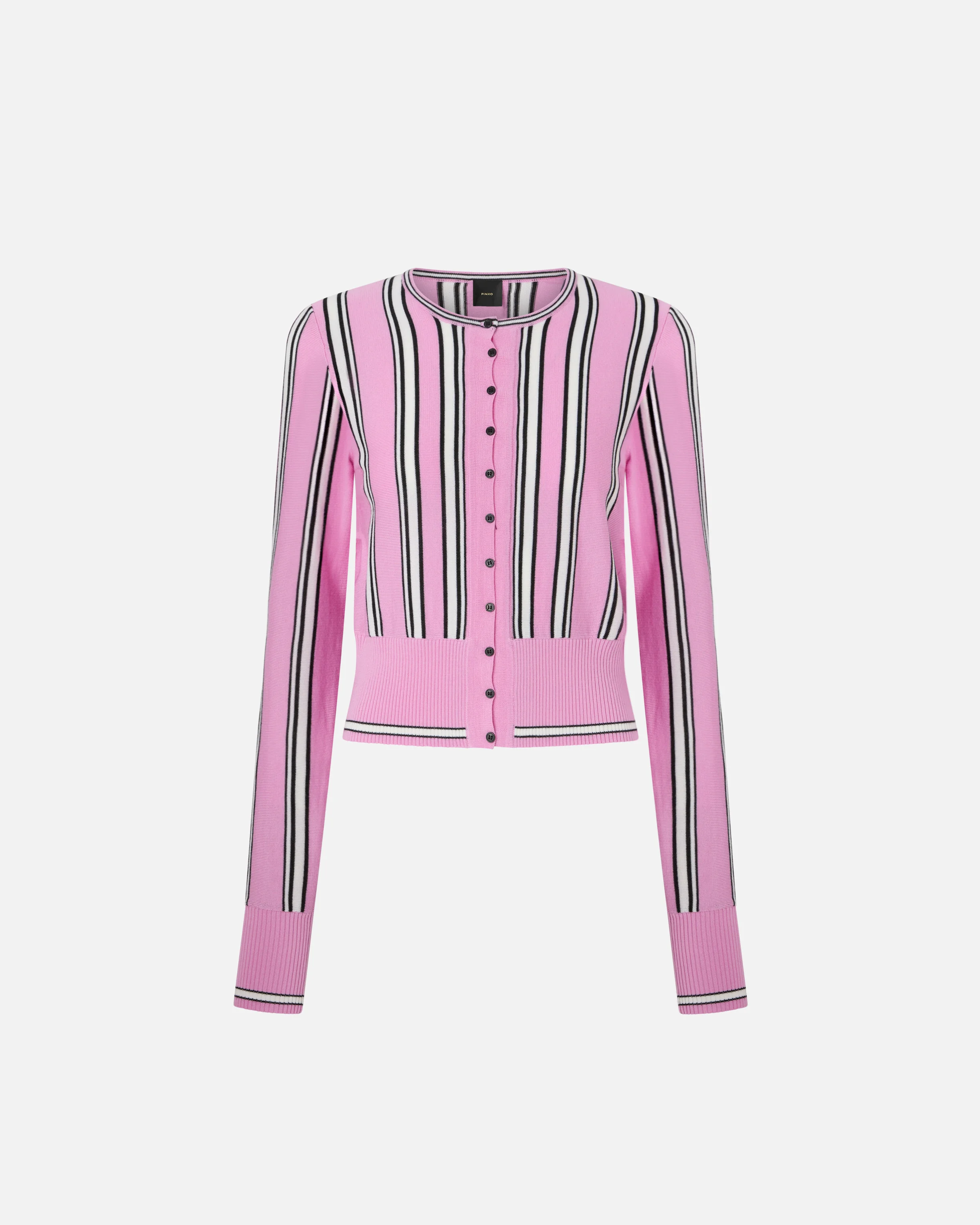 CALABRIA CARDIGAN − 105764A2UON3Z Extra-fine pure merino wool cardigan featuring a contrasting vertical-striped pattern, perfect for adding a pop of colour to your wardrobe. The cuffs and hem are ribbed, while the back is customised with the PINKO lettering logo label. The piece has undergone finishing tests to minimise the possible formation of pilling, ensuring greater fabric softness and durability. Choose this design to recreate a vibrant but classy look, which will accompany you at all times of the day, from the office to evenings out with friends. COMPOSITION 1st Outer Yarn: WOOL 100% - 2nd Outer Yarn: POLYAMMIDE 86% POLYAMIDE 86% ELASTANE 14%