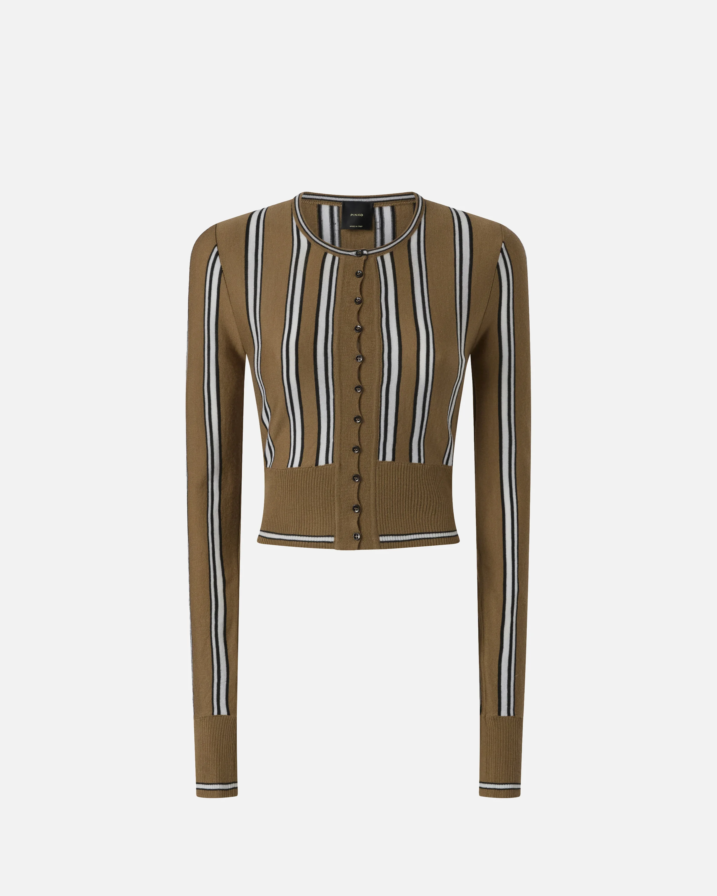 CALABRIA CARDIGAN − 105764A2UOL4Z Extra-fine pure merino wool cardigan featuring a contrasting vertical-striped pattern, perfect for adding a pop of colour to your wardrobe. The cuffs and hem are ribbed, while the back is customised with the PINKO lettering logo label. The piece has undergone finishing tests to minimise the possible formation of pilling, ensuring greater fabric softness and durability. Choose this design to recreate a vibrant but classy look, which will accompany you at all times of the day, from the office to evenings out with friends. COMPOSITION 1st Outer Yarn: WOOL 100% - 2nd Outer Yarn: POLYAMMIDE 86% POLYAMIDE 86% ELASTANE 14%