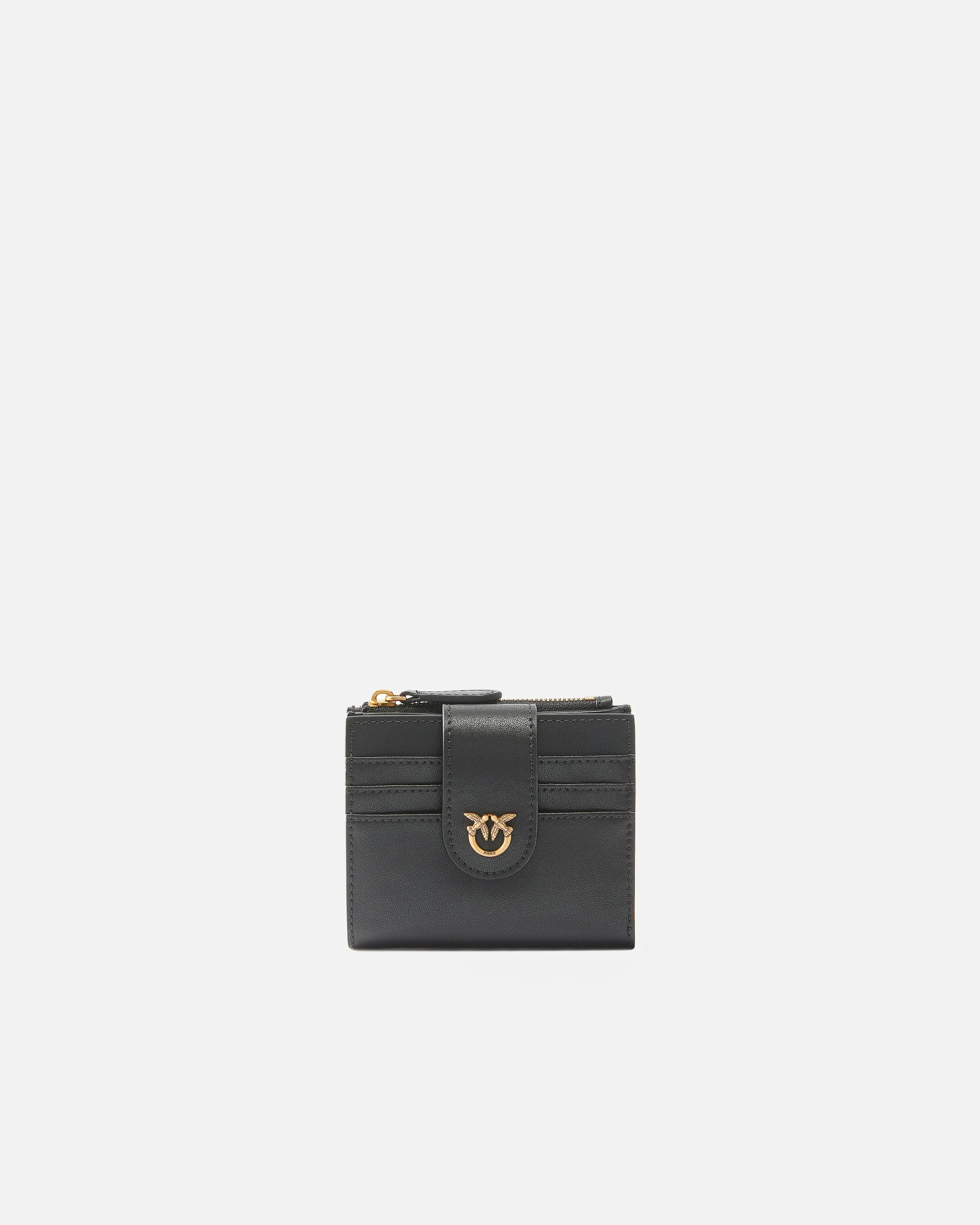 MULTI-PURPOSE WALLET − 103610A0F1Z99Q00001 Small, square-shaped wallet in soft, smooth-textured leather with numerous card slots, document compartment and zipped coin pocket. The small-strap fastening is customised with a metal Love Birds logo plaque, giving this accessory—perfect to slip in your bag—an iconic touch. Activate your PINKO accessory: verify the authenticity of your product and access a personalised experience by scanning the Love Birds embroidery on the back with your smartphone! COMPOSITION Leather: CALF LEATHER 100% CALFSKIN LEATHER 100% - Lining: COTTON 100% - Accessory: Zinc 100% MEASUREMENTS - Height: 10 cm - Width: 3 cm - Length: 12 cm