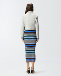 106247A32I-I18 Biker-style jacket in soft nappa leather with off-centre zip fastening. This garment features a wide buttoned lapel, vertical zipped pockets on the front, a breast pocket with flap and button, and convenient zipped openings on the cuffs. The design is finished with the iconic embossed Love Birds logo at the back. This jacket is a contemporary reinterpretation of the classic leather biker jacket, and is perfect to complete your looks with a bold touch that doesn't sacrifice femininity. - NEW SENSIBILE BIKER JACKET COMPOSITION Lining: POLYESTER 100% - Leather: SHEEP LEATHER 100% SHEEPSKIN LEATHER 100% MEASURES W: 1.03 g