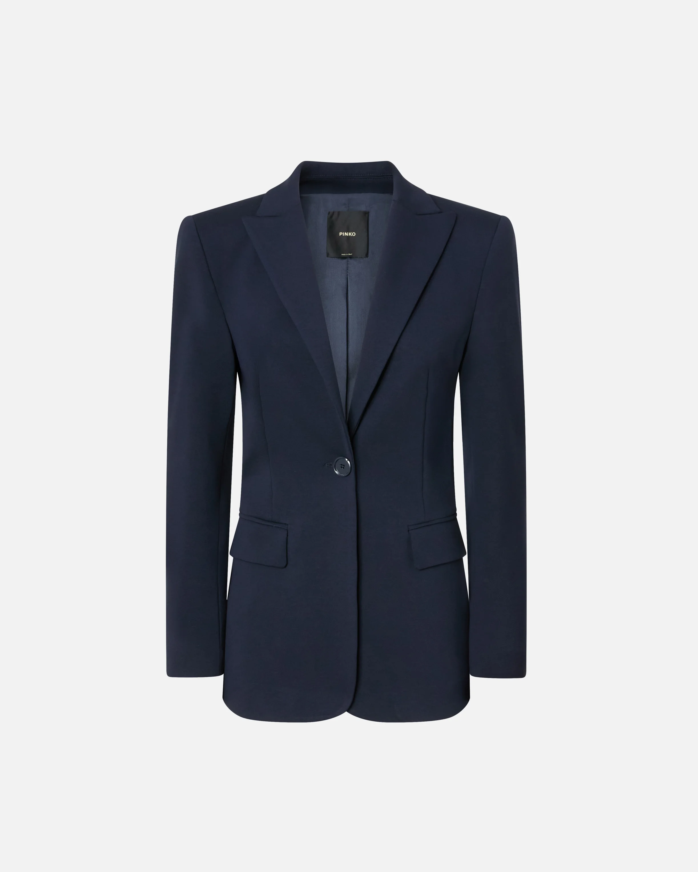 NEW SIGNUM JACKET ā 104903A24CGA3 Single-breasted, fitted blazer in technical, full Milano-knit stretch viscose fabric. The piece is finished with tailored details, such as the darts that accompany and emphasise the figure, and classic details, such as the lapel collar and flap pockets. Pair the blazer with the trousers in the same fabric to create a suit effect or with a shirt for a slightly but not overly formal look. COMPOSITION Outside Fabric: VISCOSE 67% POLYAMMIDE 28% POLYAMIDE 28% ELASTANE 5% - Lining: ACETATE 67% POLYESTER 33%