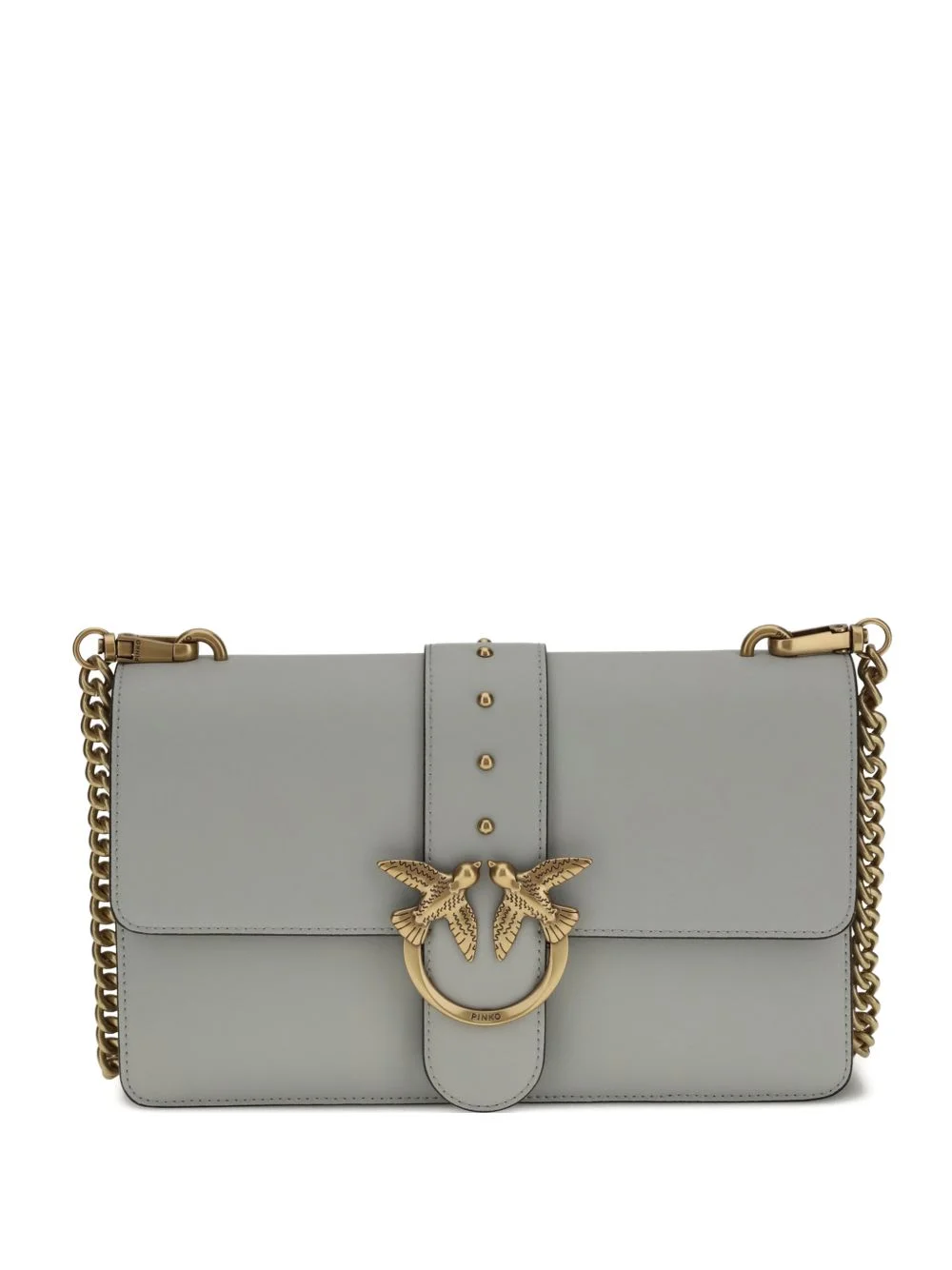 One Simply Love studded chain shoulder bag Highlights - Light grey - Bird detail - Detachable chain shoulder strap - Gold-tone hardware - Studded embellishment Imported Composition Outer: Calf Leather 100% SIZE & FIT Measurement DEPTH 2.75 in(7 cm) WIDTH 10.62 in(27 cm) HEIGHT 9.05 in(23 cm)