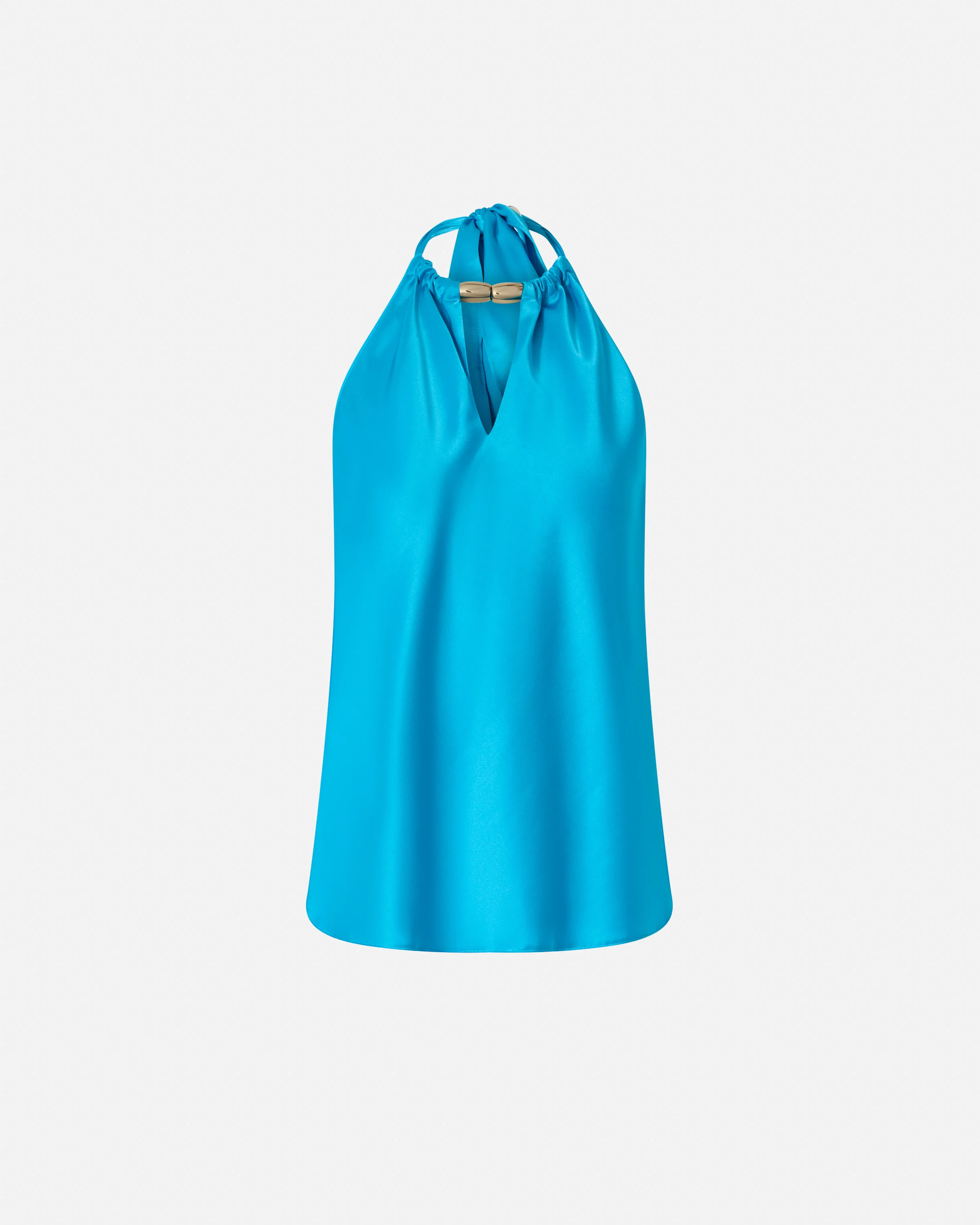 BRISCOLA TOP − 105614A2RAF34 Loose-fit sleeveless top with a halterneck embellished with metal spheres. A touch of sensuality is provided by the bared back, which is caressed by the sash tie on the neck that falls free, creating movement. The shiny satin gives the piece unique shimmer and a particularly soft hand. Wear this top for a fluid, slinky effect that elegantly enhances the lines with sophistication and the feminine silhouette. COMPOSITION Outside Fabric: ACETATE 91% POLYESTER 9% - Lining: POLYESTER 100% - Accessory 1: POLYAMMIDE 100% POLYAMIDE 100% - Accessory 2: Metal 100%