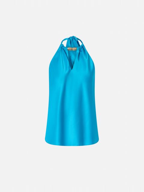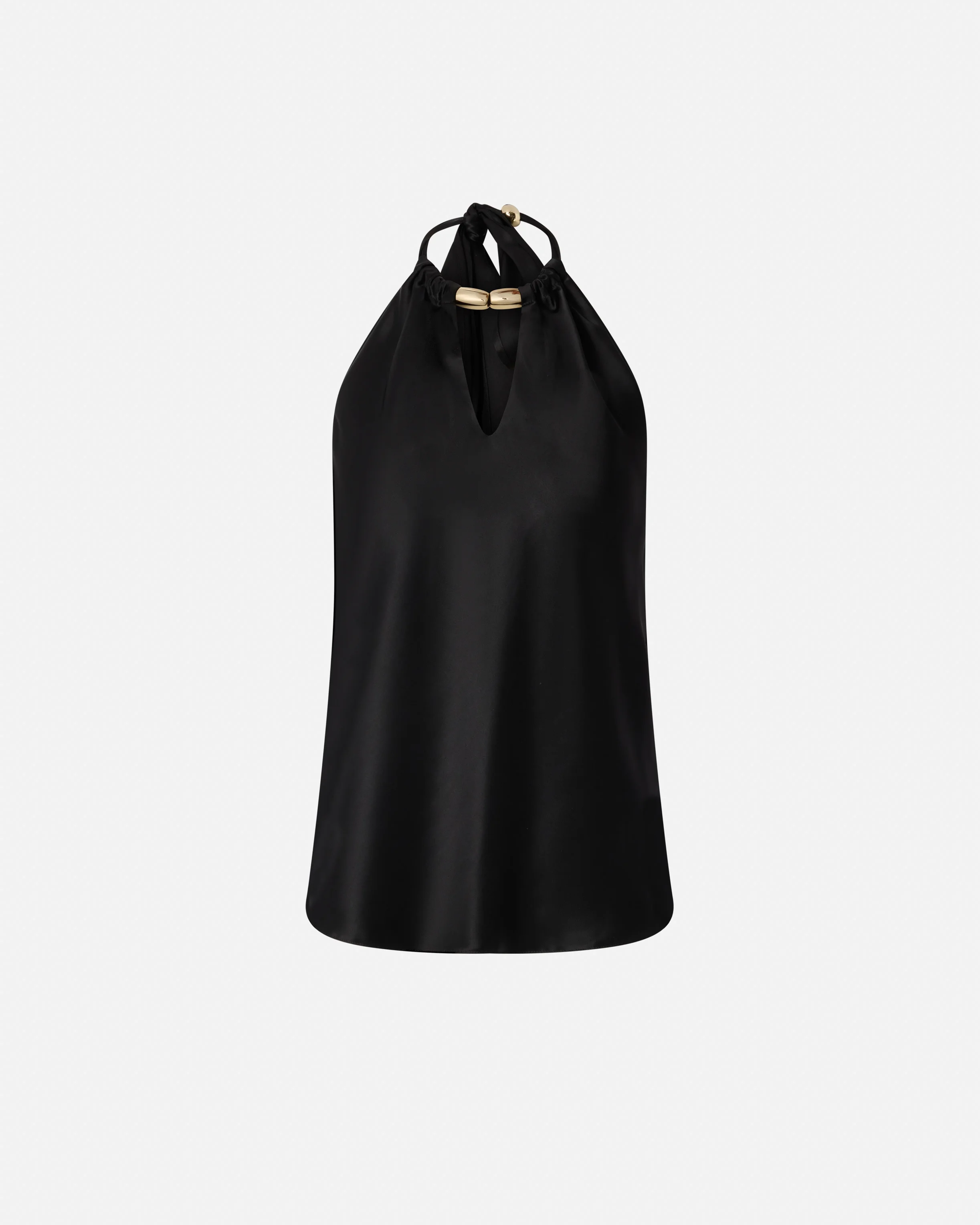 BRISCOLA TOP − 105614A2RAZ99 Loose-fit sleeveless top with a halterneck embellished with metal spheres. A touch of sensuality is provided by the bared back, which is caressed by the sash tie on the neck that falls free, creating movement. The shiny satin gives the piece unique shimmer and a particularly soft hand. Wear this top for a fluid, slinky effect that elegantly enhances the lines with sophistication and the feminine silhouette. COMPOSITION Outside Fabric: ACETATE 91% POLYESTER 9% - Lining: POLYESTER 100% - Accessory 1: POLYAMMIDE 100% POLYAMIDE 100% - Accessory 2: Metal 100%