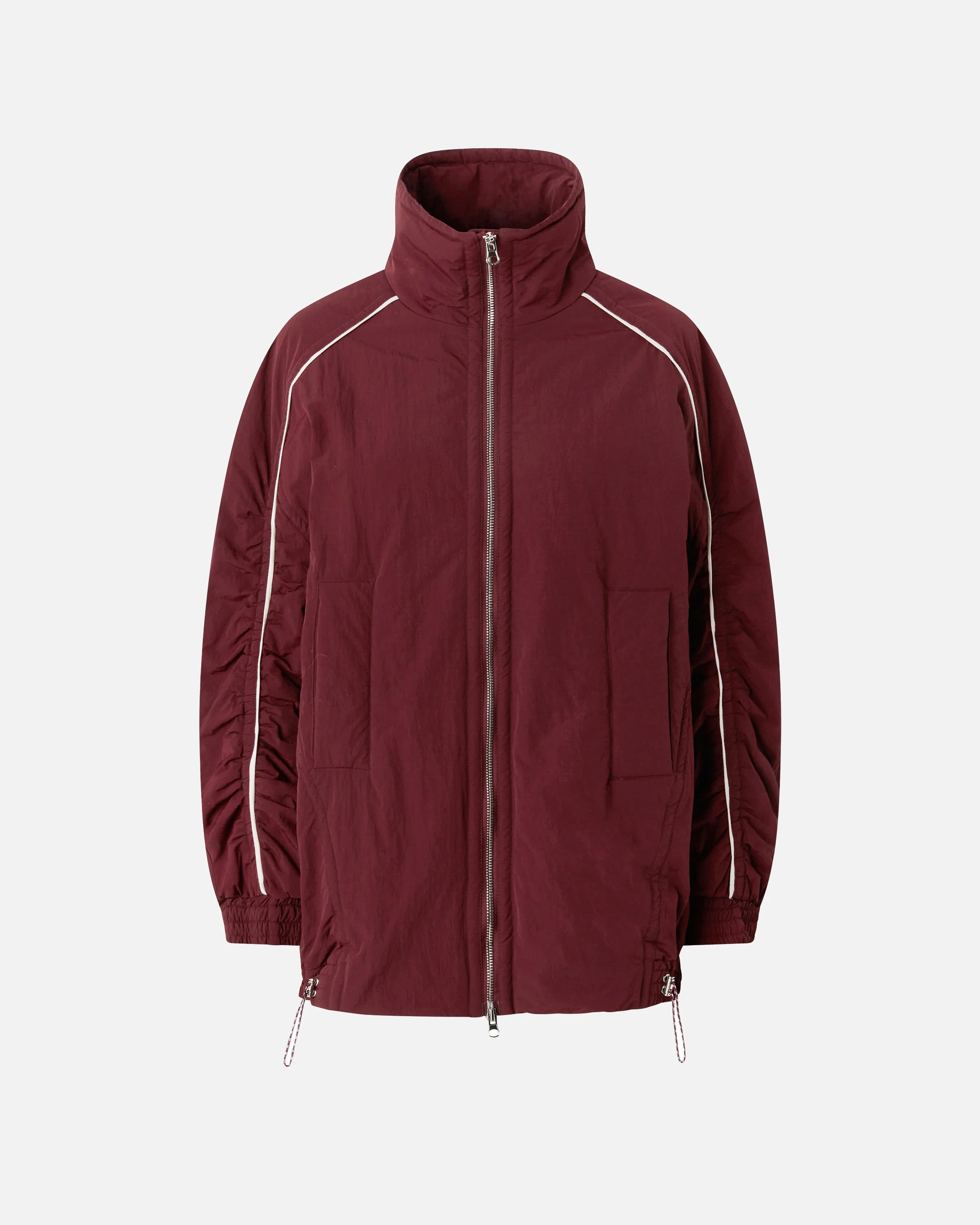 CLARINDA BLOUSON − 105942A2YLR57 Blouson jacket with stand-up collar, made from technical canvas washed to give the material a wavy, textured effect typical of sportswear. In a clear nod to utility style, this item is edged with contrasting piping that outlines the oversized shape and features side pockets, elasticated cuffs and a trekking-inspired drawstring at the hem to adjust the fit. Embrace sporty style with this practical, versatile piece, to wear in your free time or for more casual occasions. COMPOSITION Outside Fabric: POLYAMMIDE 100% POLYAMIDE 100% - : VISCOSE 92% ELASTANE 8% - : POLYESTER 100% - Padding: POLYESTER 100%