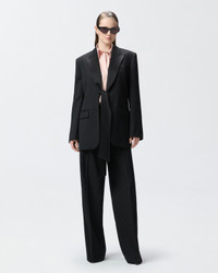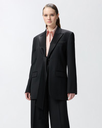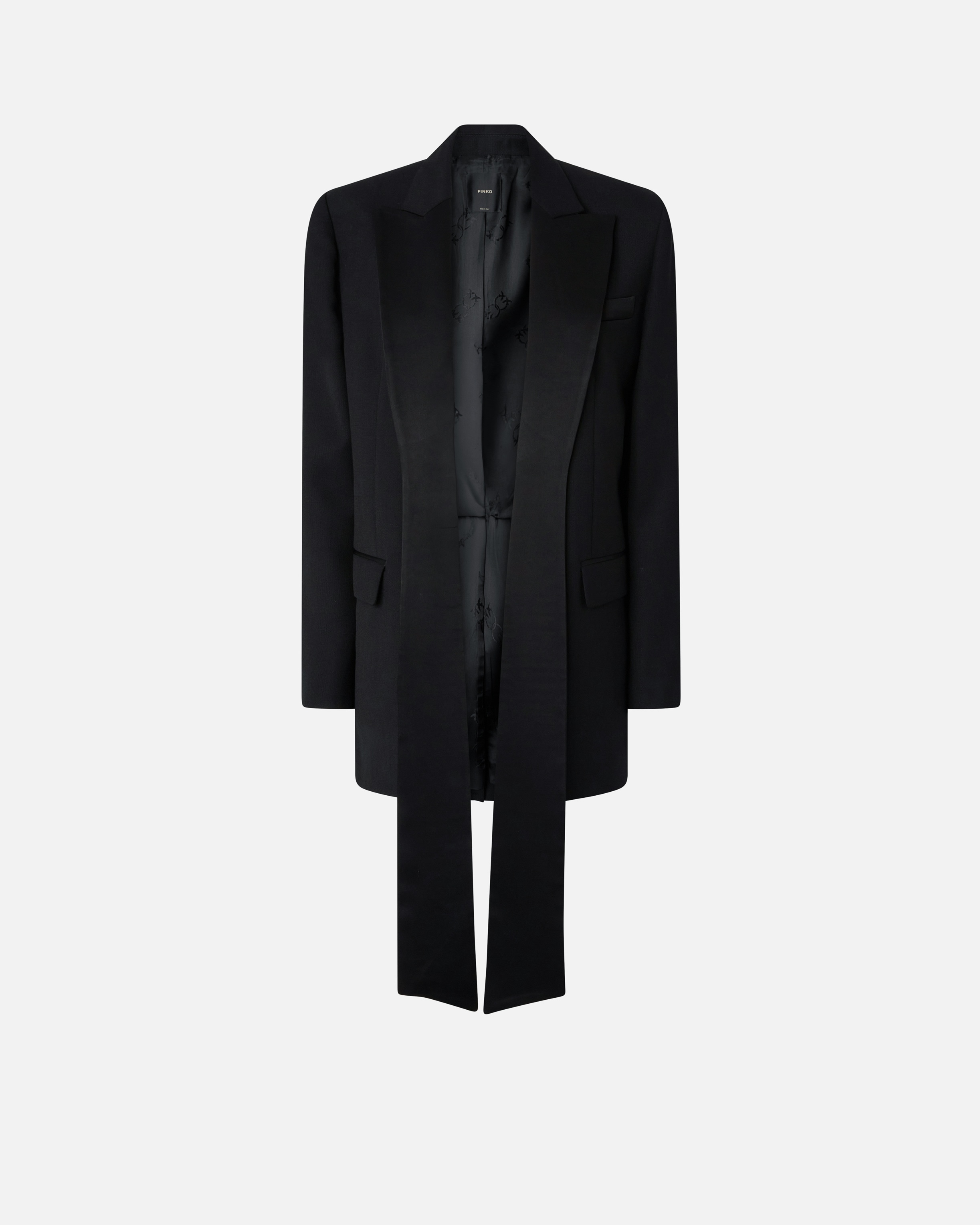 GAZELLE JACKET − 104668A2CNZ99 Elegant single-breasted blazer jacket with a slightly oversized silhouette made of technical wool fabric with a shiny satin lapel collar, completed by a tie sash. The volume of the jacket is enhanced by the constructed, lightly padded shoulders, while the inner lining guarantees a high degree of comfort while wearing the jacket. The blazer is completed by flap pockets on the front and a classic welt pocket. Wear the blazer with matching trousers to show off a contemporary and bold ensemble, whether you're in the office or on special occasions. COMPOSITION 1° Outside Fabric: POLYESTER 55% WOOL 45% - 2° Outside Fabric: ACETATE 91% POLYESTER 9% - Lining: ACETATE 53% VISCOSE 47%
