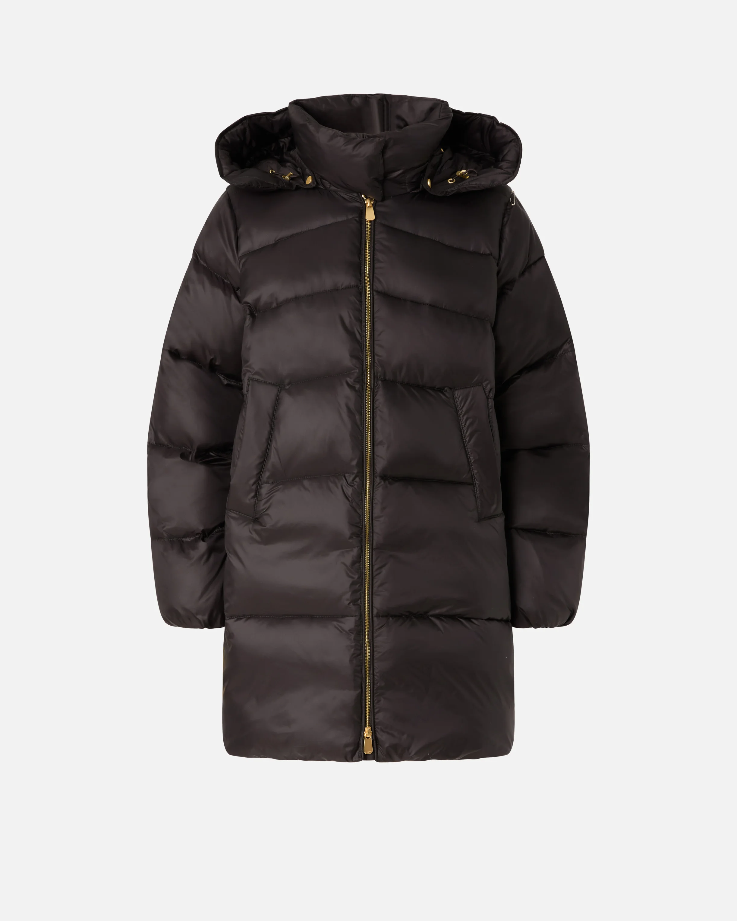 CALZONE COAT − 105720A2TFZ99 Padded coat made from semi-glossy technical canvas with horizontal quilting. This garment features a high collar with a removable hood, long sleeves and welt pockets. Zip fastening on the front. Face the coldest temperatures with this garment that is ready to give you a soft hug. COMPOSITION Outside Fabric: POLYAMMIDE 100% POLYAMIDE 100% - Body lining: POLYAMMIDE 100% POLYAMIDE 100% - Sleeve lining: POLYESTER 100% - Padding: POLYESTER 100%