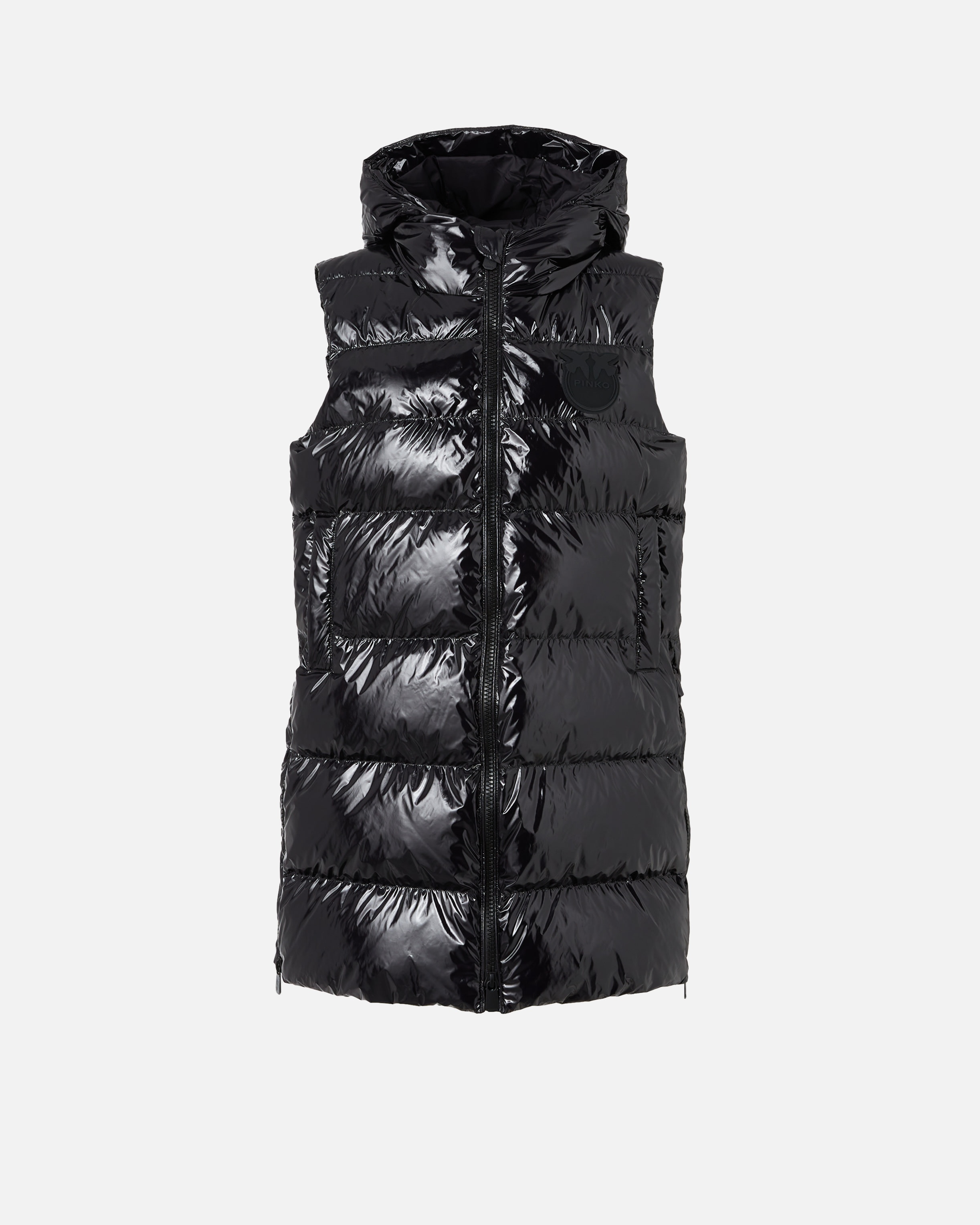 GRAFFETTA VEST − 103825A11KZ99 Padded puffer gilet in technical crystal nylon fabric with a very glossy texture and horizontal quilting. Customised with rubber-effect Love Birds logo patch on the front left side. Hood collar, vertical-welt pockets and side zips that allow you to tailor the garment's fit to your liking. Two-way zip fastening at the front. COMPOSITION 1° Outside Fabric: POLYAMMIDE 100% POLYAMIDE 100% - Lining: POLYAMMIDE 100% POLYAMIDE 100% - Secondary Lining: POLYESTER 100% - coating: POLYURETHANE 100% - Padding: POLYESTER 100%