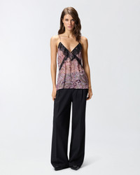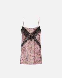 FRENCHTOAST TOP − 106764A38DNY4 Lingerie-inspired top with relaxed, straight-cut fit, spaghetti straps and lace inserts with small bow on the V-neck. This piece is made from lightweight semi-sheer viscose crepon and is embellished with a sophisticated cashmere-inspired print with metallic-thread detailing for extra radiance. The garment's light weight and silhouette make it ultra feminine and the perfect choice for drinks with friends or a date. COMPOSITION Outside Fabric: VISCOSE 99% Metallic fibre 1% Metallised Fibre 1% - Accessory: POLYAMMIDE 100% POLYAMIDE 100%