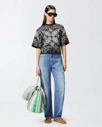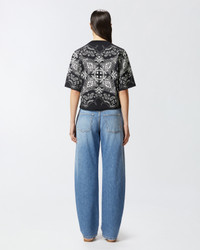 NIAMEY T-SHIRT − 104604A2CYZDI Short-sleeved sweater in soft cotton jersey with a bandana-themed placed print, which reproduces the classic paisley pattern that has become an icon of casual style. The t-shirt is completed with a round neckline and half-sleeves with a slightly wide volume, for a reinterpretation of a spring wardrobe classic, perfect to complement your favorite jeans. COMPOSITION 1° Outside Fabric: COTTON 100% - 2° Outside Fabric: COTTON 100%