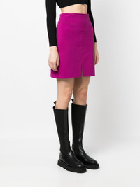 panelled high-waisted skirt Highlights - Orchid purple - Jersey texture - Panelled design - Rear zip fastening - High-waisted - A-line - Front slit - Thigh-length Imported Composition Outer: Viscose 67%, Polyamide 28%, Spandex/Elastane 5% Lining: Acetate 68%, Polyester 32% SIZE & FIT Model measurements Height 5 ft 11 in(1.8 m) Bust/Chest 31.49 in(80 cm) Hips 36.22 in(92 cm) Waist 25.59 in(65 cm)