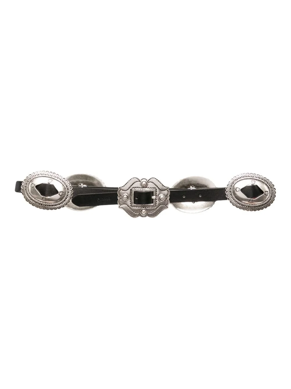 Paracas belt Highlights - Black - Calf leather - Decorative buckles detail - Punched holes - Debossed logo to the front - Pointed tip - Silver-tone hardware - Pin-buckle fastening - Adjustable fit Made in Italy Composition Calf Leather 100%, Brass 100% SIZE & FIT Measurement Maximum Length 33.85 in(86 cm) Minimum Length 30.31 in(77 cm) WIDTH 1.96 in(5 cm)