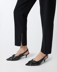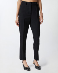 PALAU TROUSERS − 103702A1XXZ99 Elegant cigarette-fit trousers made of stretch wool-blend twill fabric with small triangular-shaped insert at the waist and centre at the back. The slim silhouette of the trousers is complemented by belt loops at the waist, welt pockets at the hips, buttoned welt pockets at the back, and a small slit at the bottom of the leg on the inside. When worn with the matching single-breasted blazer, the trousers create a contemporary and classy update of the outfit to be worn to the office but also on special evenings. Button and zip fastening. COMPOSITION 1° Outside Fabric: POLYESTER 54% WOOL 44% ELASTANE 2% - 2° Outside Fabric: POLYESTER 100% - Lining: COTTON 100% - coating: POLYURETHANE 100%
